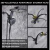 - Patented dual shower head, switch black knob of shower bracket, you can change water flow from fixed rainfall shower head to handheld shower head or both of them. This special design can bring more convenient to you enjoy showering time at the same time of saving water (Patent NO: US0D1058748S)
