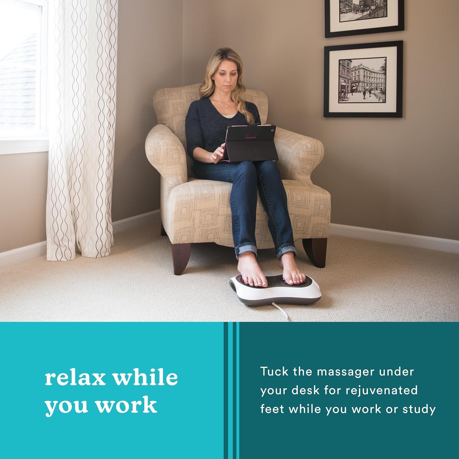 El masajeador de pies Shiatsu HoMedics con calor proporciona un masaje Shiatsu profundo que relaja tus pies. Seleccione la opción de calor para agregar calidez relajante a su masaje. Innovadores cabezales de masaje contrarrotativos y control táctil fácil de usar te dan el masaje exacto de pies que necesitas.