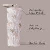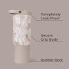 • Diseño consciente: cuenta con un asa de agarre para mayor comodidad, una tapa roscada para limpiarla fácilmente y llenarla de hielo, y un popote adjunto para que puedas beber directamente de la botella. La almohadilla base de silicona mantiene la botella en su lugar.