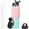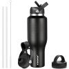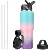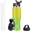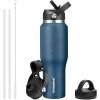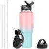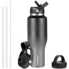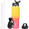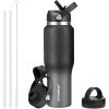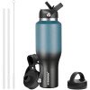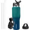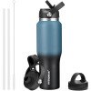 HYDROWION Botella de agua aislada (fría 48 horas, calor 24 horas) Vaso de agua de acero inoxidable de 40 onzas con tapa de popote a prueba de fugas, tapa de boquilla y tapa flexible, vaso de viaje de