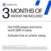- 3 meses de tinta instantánea con activación HP + – Suscríbete al servicio de entrega de tinta instantánea para recibir tinta directamente en tu puerta antes de que te agotes. Después de 3 meses, se aplica una tarifa mensual a menos que se cancele