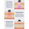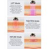 1 masajeador facial INIA – La duración del patrón de levantamiento/apriete es de 10 minutos (4 minutos en la mejilla izquierda, 4 minutos en la mejilla derecha y 2 minutos en la frente). Duración del tratamiento en modo INFUSE: 4 minutos (mejilla izquierda 2 minutos, mejilla derecha 2 minutos). Tenga en cuenta: 1. Cuando utilice el modo LIFT/TIGHTEN con el modo INFUSE, primero use el modo LIFT/TIGHTEN. Después del tratamiento, lávese el gel en la cara antes de continuar usando el modo INFUSE. 2. No utilice el modo LIFT y TIGHTEN el mismo día. 3. Ajuste la frecuencia de uso de acuerdo con la condición de la piel. 4. Para evitar un cuidado excesivo y daños a la barrera cutánea, el tiempo máximo de cada uso no debe exceder los 15 minutos (excluyendo la aplicación de gel o suero y otros tiempos de operación). Lea atentamente las instrucciones y siga las instrucciones.