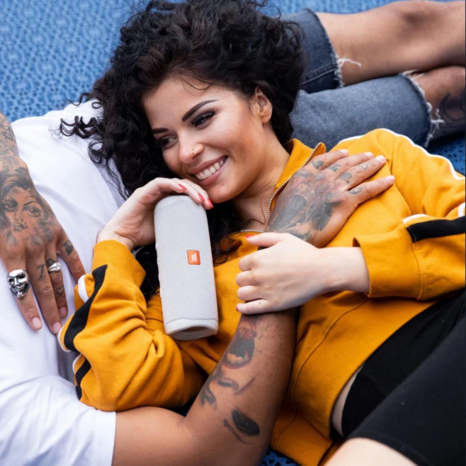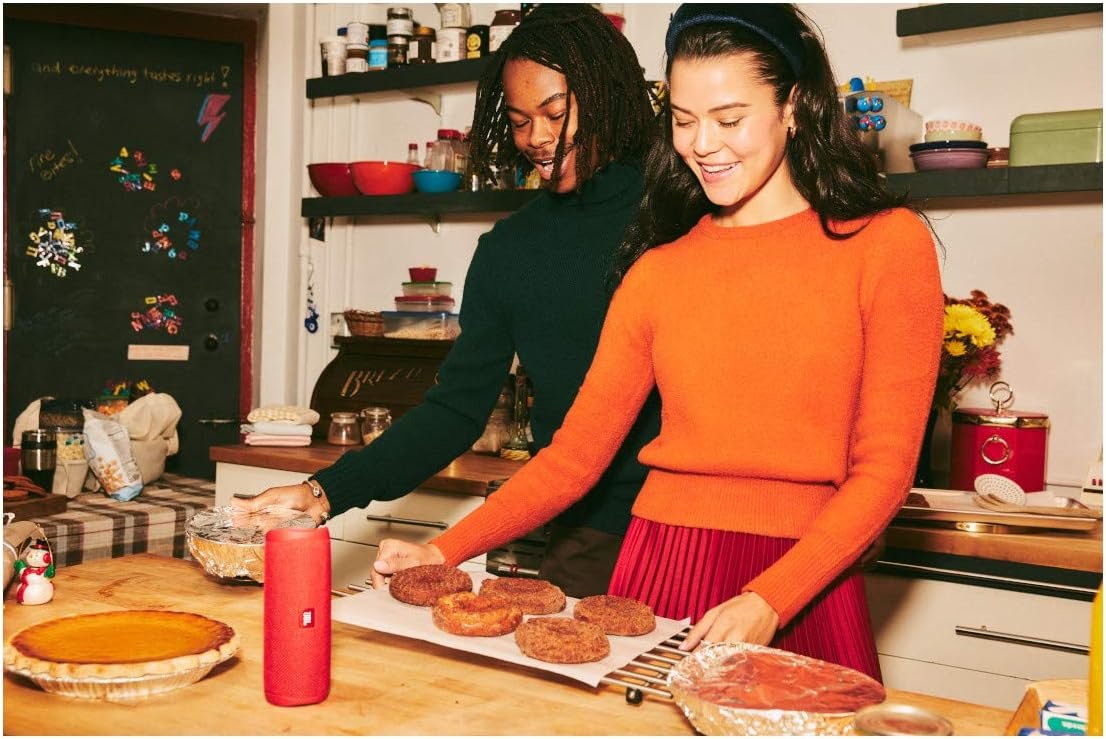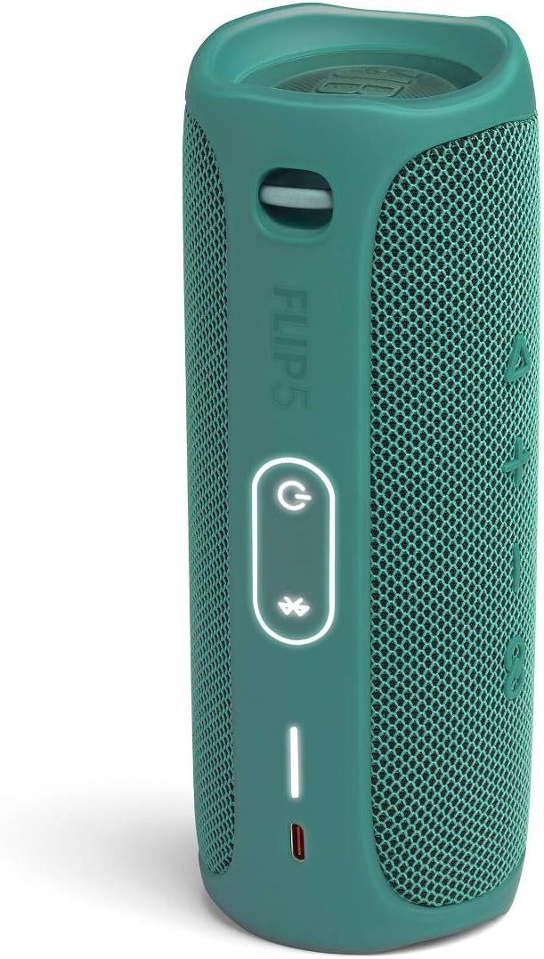 Lleva tus canciones sobre la marcha con el potente JBL Flip 5. Nuestro altavoz Bluetooth ligero va a cualquier lugar. ¿Mal tiempo? No te preocupes. Con su diseño a prueba de agua, puedes disfrutar de nuestro sonido característico de lluvia o de un día soleado. Muévete más, empareja dos altavoces compatibles con JBL Party Boost juntos para un sonido estéreo o conecta varios altavoces compatibles con JBL Party Boost para crear una fiesta más grande. Disfruta de más de 12 horas de tiempo de reproducción para tu música favorita. Póngalo vertical u horizontal y sé audaz con su elección de 11 colores vibrantes.