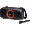 JBL PartyBox On-The-Go – Un altavoz portátil de fiesta de karaoke con micrófono inalámbrico, salida de potencia de 100 W, a prueba de salpicaduras IPX4, 6 horas de reproducción, correa de hombro y 2 altavoces inalámbricos para fiesta (negro)