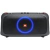 batir. Sube en voz alta con 100 vatios de potente sonido JBL Pro, sincronizado con un deslumbrante espectáculo de luz. Accede a tus canciones favoritas con la conectividad Bluetooth, USB, AUX y TWS (True Wireless Stereo), toma a un amigo y canta tus corazones con los micrófonos inalámbricos JBL o utiliza la entrada del instrumento para jugar. Con un abridor de botellas, correa de hombro acolchada, batería recargable y protección IPX4 a prueba de salpicaduras, el JBL PartyBox On-The-Go tiene todo lo que necesitas para obtener