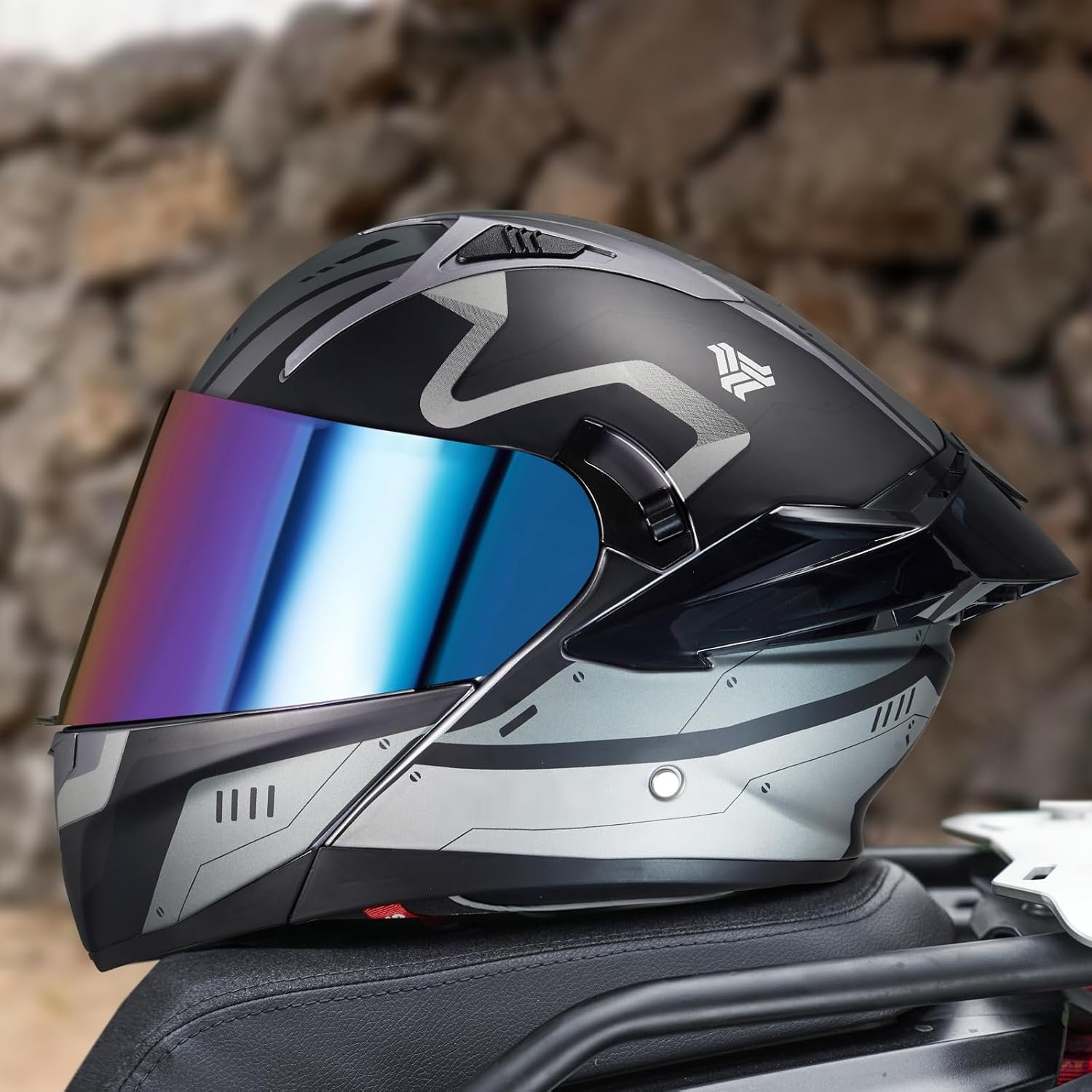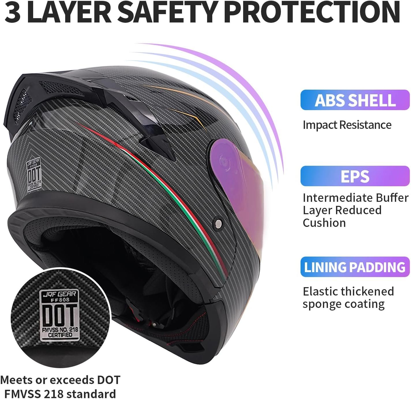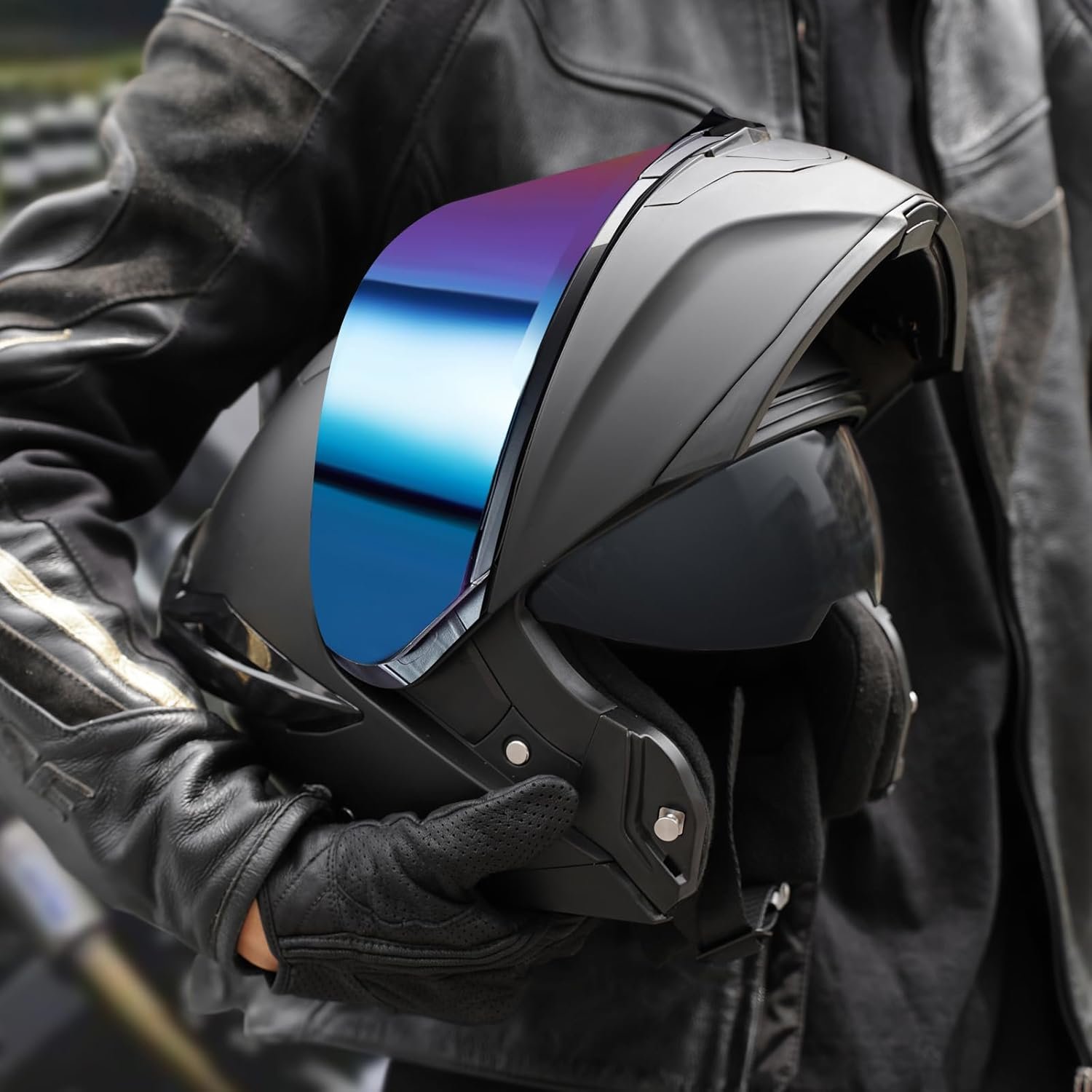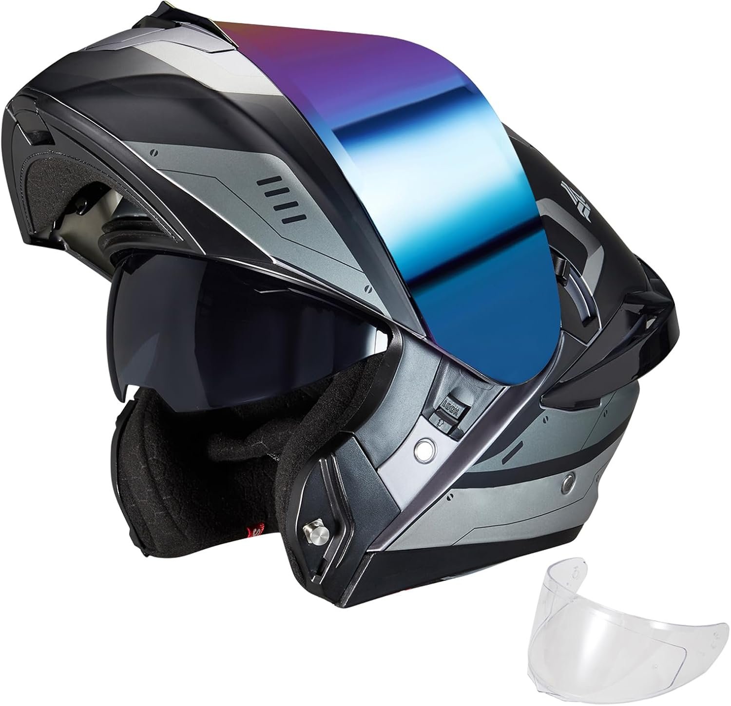 JQF Gear FF808 – Casco modular abatible de cara completa para motocicleta, doble visera (con visera transparente y arco iris)