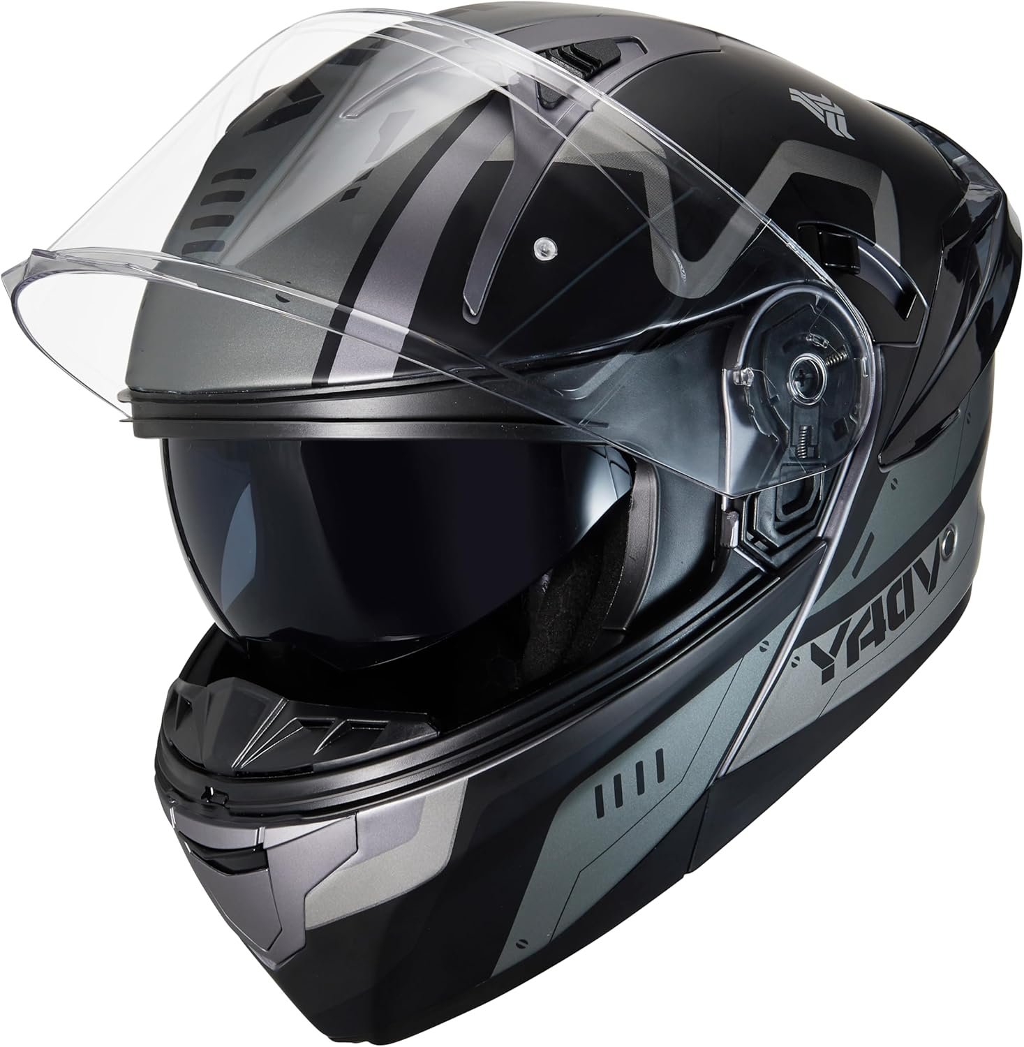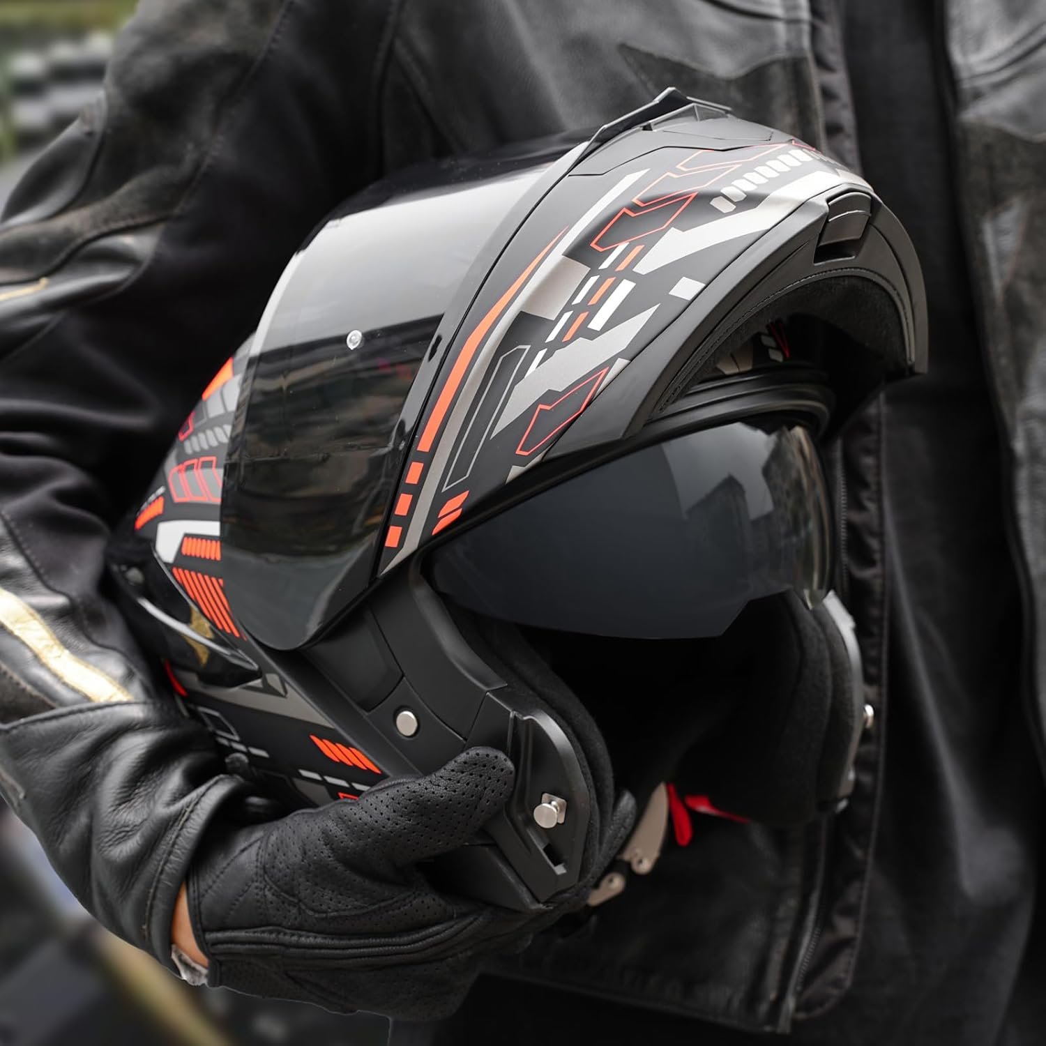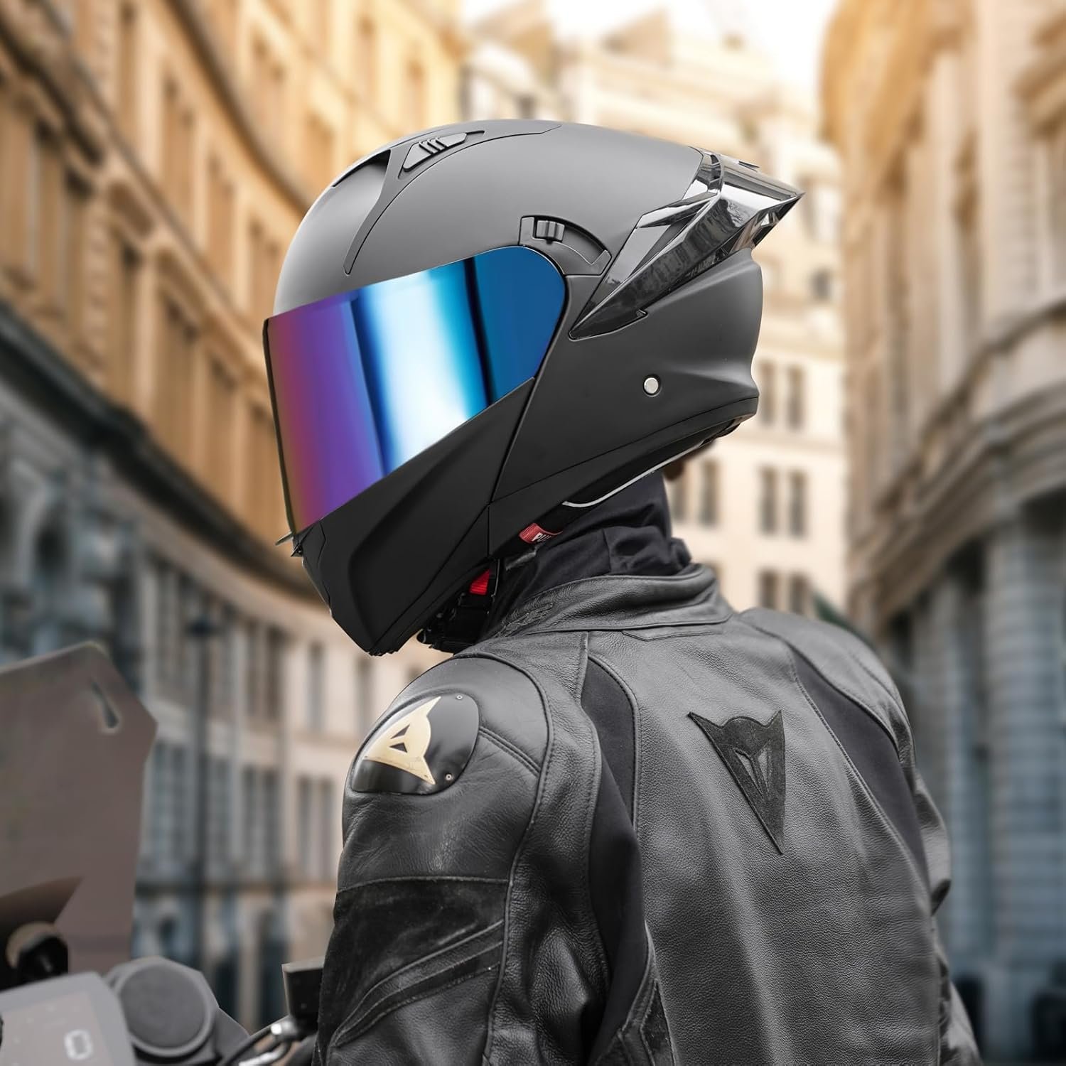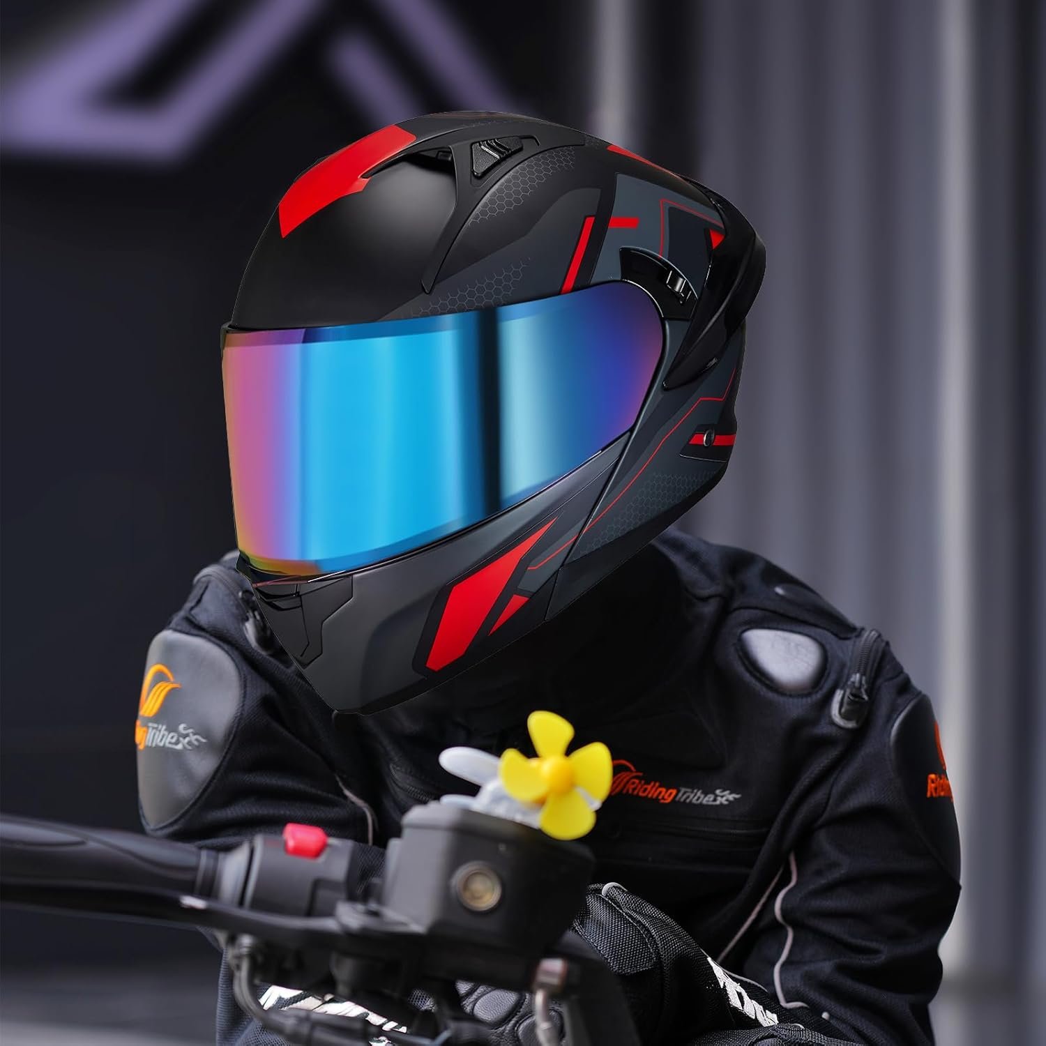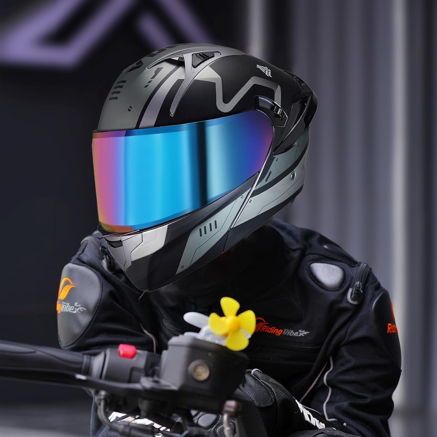 JQF Gear FF808 – Casco modular abatible de cara completa para motocicleta, doble visera (con visera transparente y arco iris)