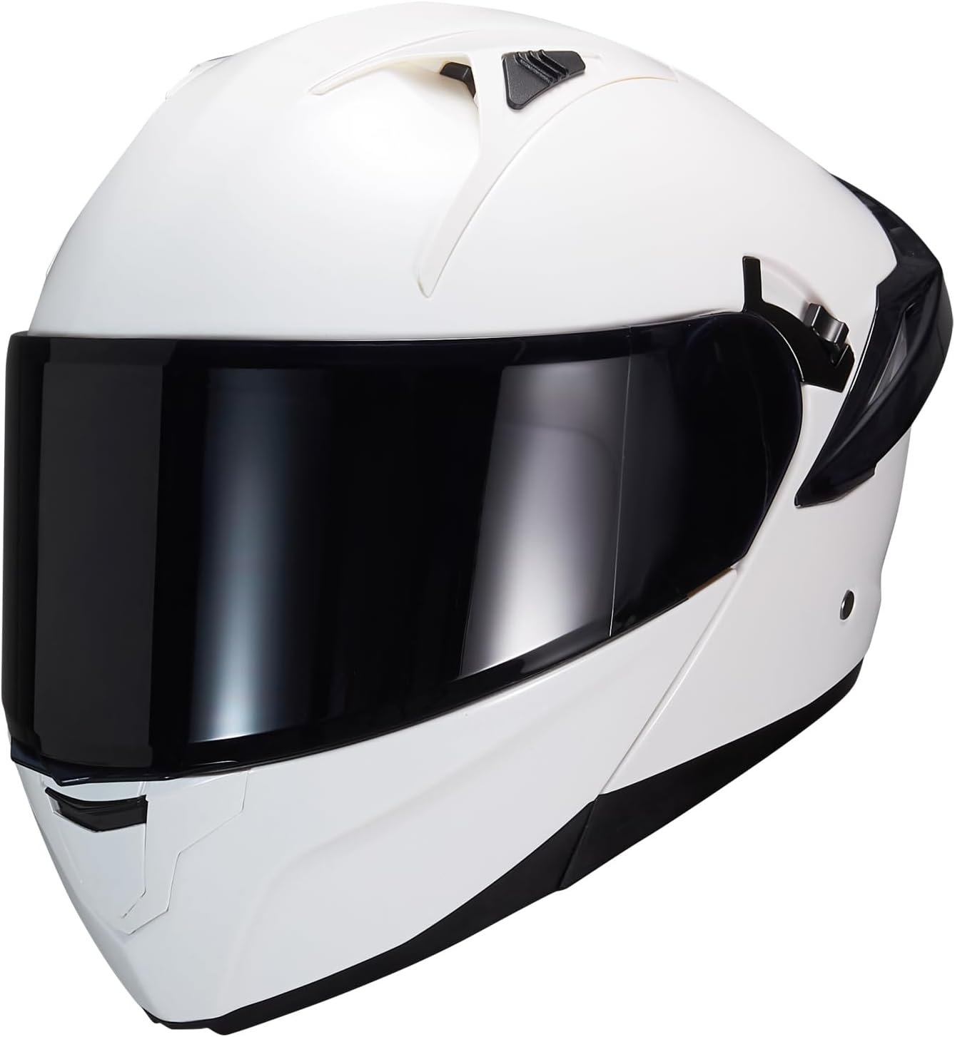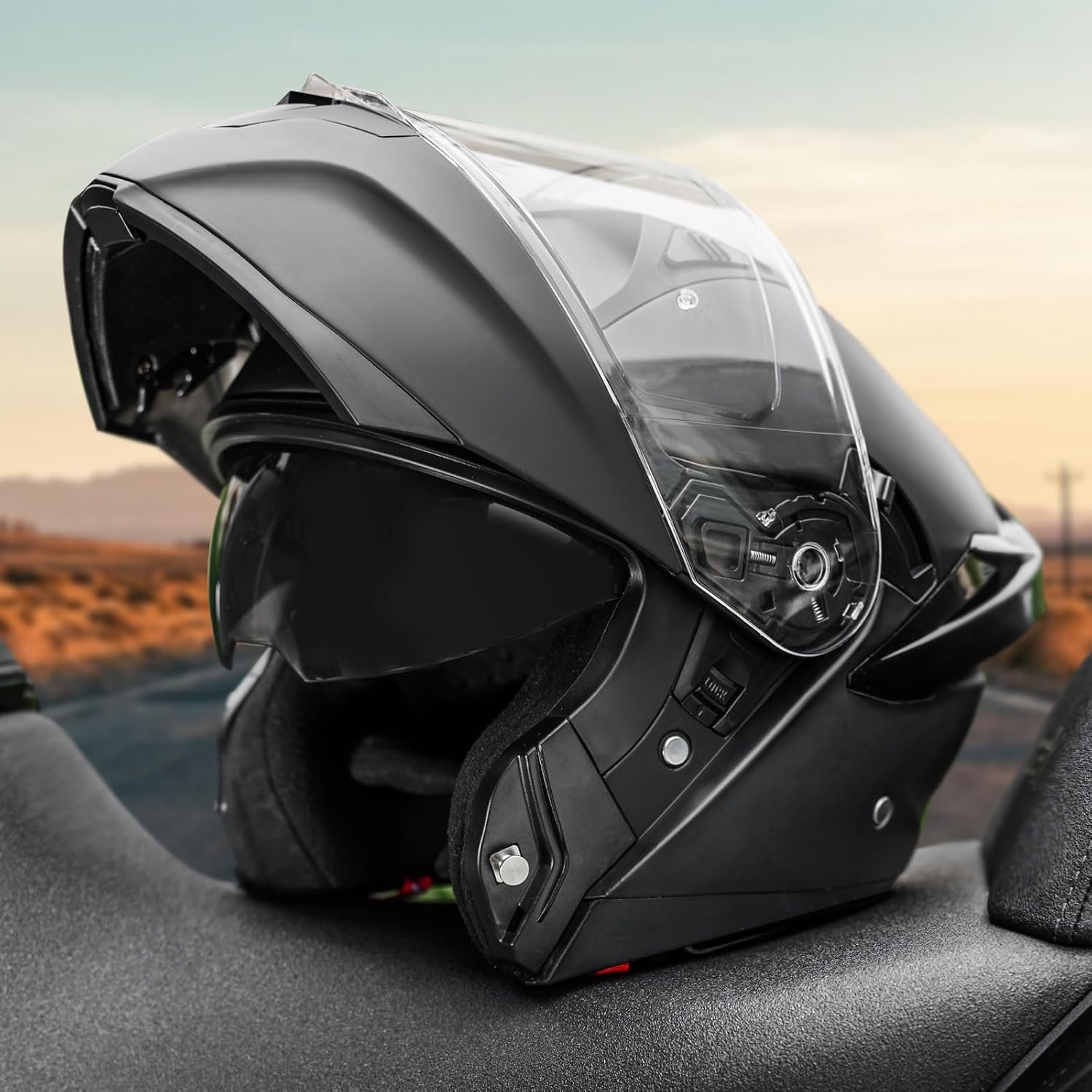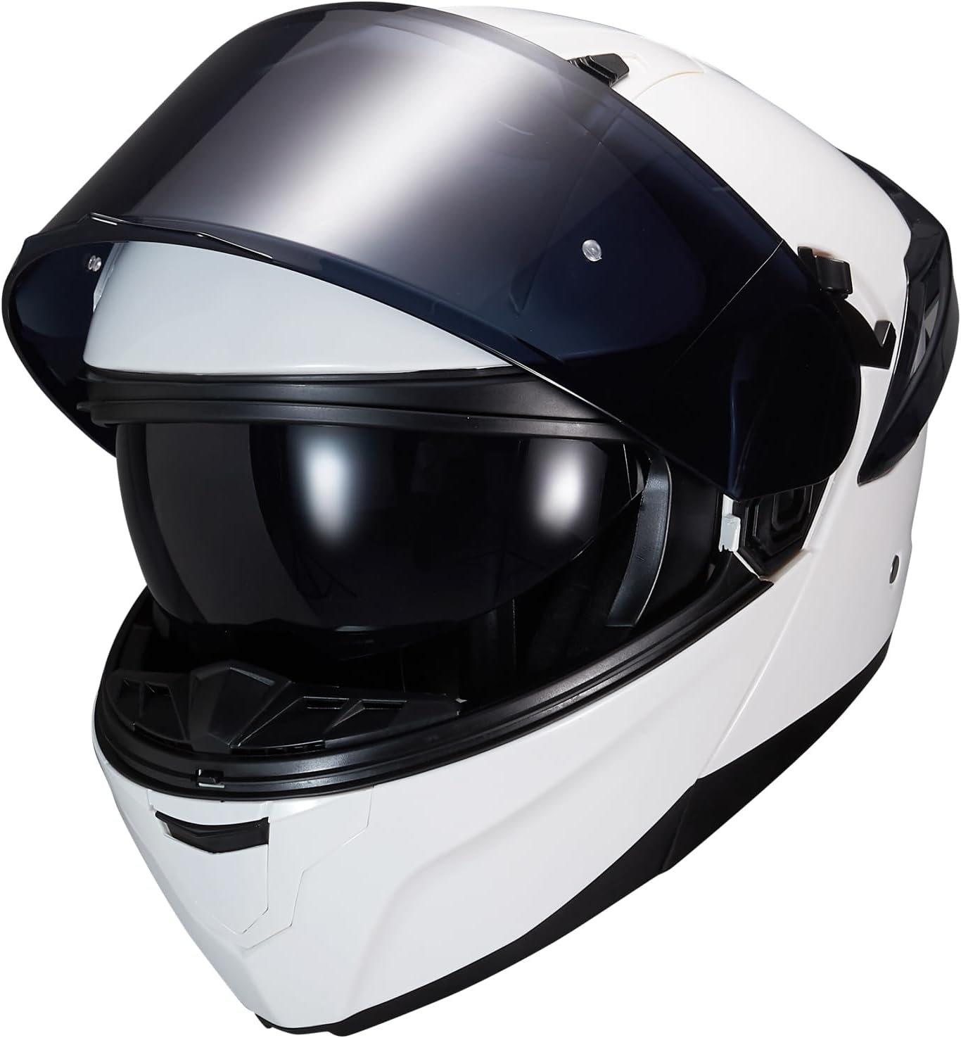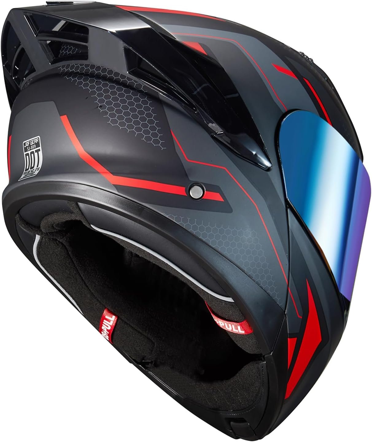 JQF Gear FF808 – Casco modular abatible de cara completa para motocicleta, doble visera (con visera transparente y arco iris)