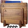 Juego de 7 tablas de cortar grandes, tabla de cortar de madera de acacia para cocina con soporte pies antideslizantes, alfombrillas de plástico para servir, ranura para jugo, bloque de carnicero