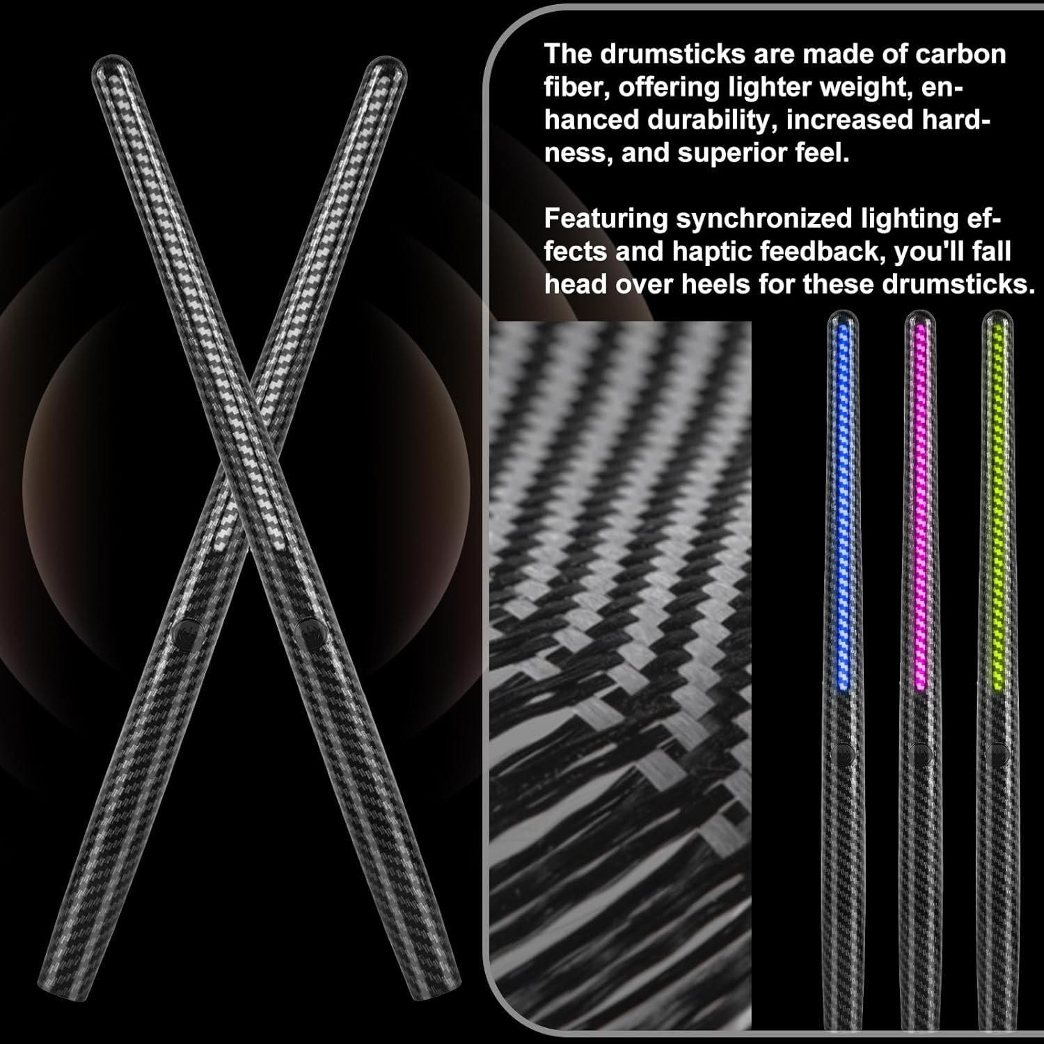 - Experiencia profesional de batería: el juego de batería Air ofrece una experiencia de percusión de nivel profesional para principiantes, niños y adultos, lo que te permite rock and roll. Las baquetas están hechas de fibra de carbono, ofreciendo un peso más ligero, durabilidad mejorada, mayor dureza y sensación superior. Los componentes premium ofrecen una excelente calidad de sonido y capacidad de respuesta, proporcionando una experiencia de rendimiento real y dinámica