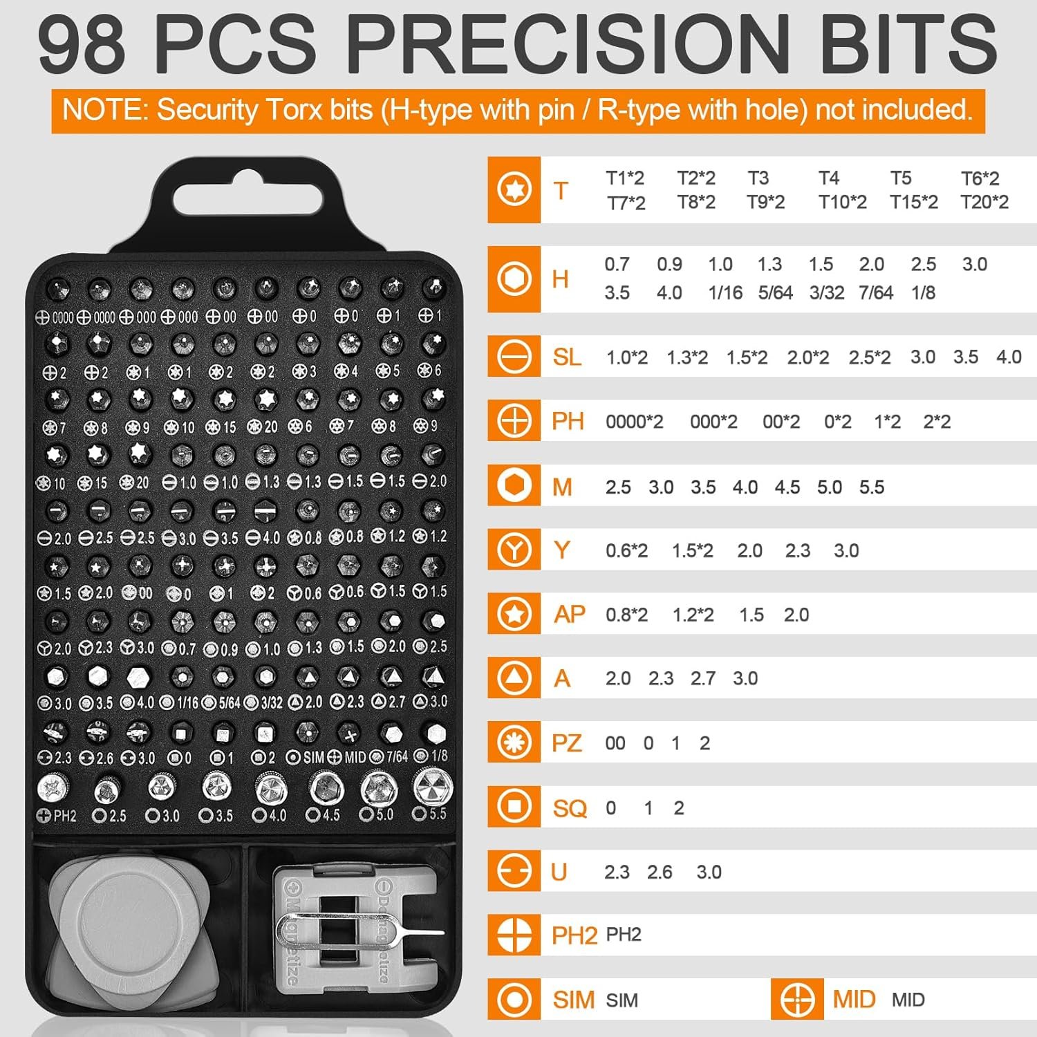 | Torx | T1, T2, T3, T4, T5, T6*2, T7*2, T8*2, T9*2, T10*2, T15*2, T20*2 |