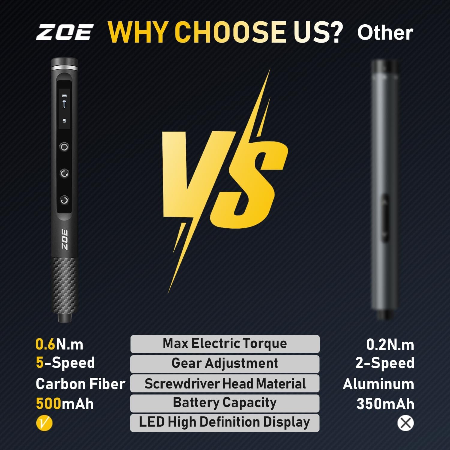 • Destornillador eléctrico inalámbrico: el destornillador eléctrico tiene 5 tipos de par, respectivamente: 0.12N/m, 0.22N/m, 0.32N/m, 0.42N/m, 0.6N/m, pulsa el botón para ajustar el par para encender la luz, encender y apagar manualmente la luz, el material utilizado en el mango es fibra de carbono, lo que mejora la resistencia del producto al impacto, la batería adopta un gran Capacidad de 5000 mAh, que puede continuar a un tiempo de trabajo más largo