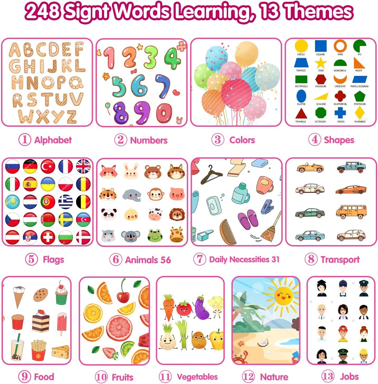 - Aplicable tanto para el hogar como para la clase: estos juguetes para niños pequeños pueden ser utilizados por padres y profesores para enseñar a los más pequeños a aprender a hablar, ampliar el vocabulario y reforzar las palabras de vista de una manera mucho más interesante, especialmente útil para que los niños autistas desarrollen la capacidad del habla.