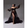 Vestido de malla con lunares transparente y manga farol para maternidad con aberturas laterales sexy estilo vestido lencero para sesión de fotos