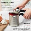 - Pomo giratorio sin esfuerzo: la perilla de gran tamaño y fácil de girar ofrece un agarre seguro, lo que te permite abrir latas con un mínimo esfuerzo y máximo control, ideal para usuarios con fuerza de mano limitada.