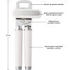 Abre latas o botellas de cualquier tamaño con el abrelatas KitchenAid Classic. La rueda de corte de acero inoxidable duradera y afilada perfora fácilmente y corta suavemente las latas, mientras que la perilla grande proporciona un agarre seguro para girar sin esfuerzo. Las asas ergonómicas de gran tamaño proporcionan la máxima comodidad y control para un uso simple y seguro. Esta herramienta 2 en 1 cuenta con un abridor de botellas integrado para quitar las tapas con facilidad. Lavar a mano con agua tibia y un detergente suave; enjuagar y secar inmediatamente. Un año de reemplazo sin complicaciones y garantía limitada de por vida.