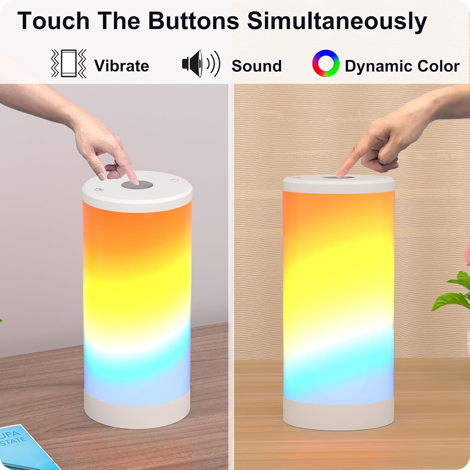- Vibración sorpresa: Si extrañas mucho a tu familia, amante o amigo en este momento, puedes presionar el botón de amor. Entonces su lámpara de larga distancia y la suya cambiarán a diferentes colores simultáneamente. Si tu familia, amante o amigo también presiona el botón de amor al mismo tiempo, las lámparas de escritorio vibrarán y tendrás una sensación especial como si estuvieran a tu lado. Puedes elegir entre varios modos de cambio de color.