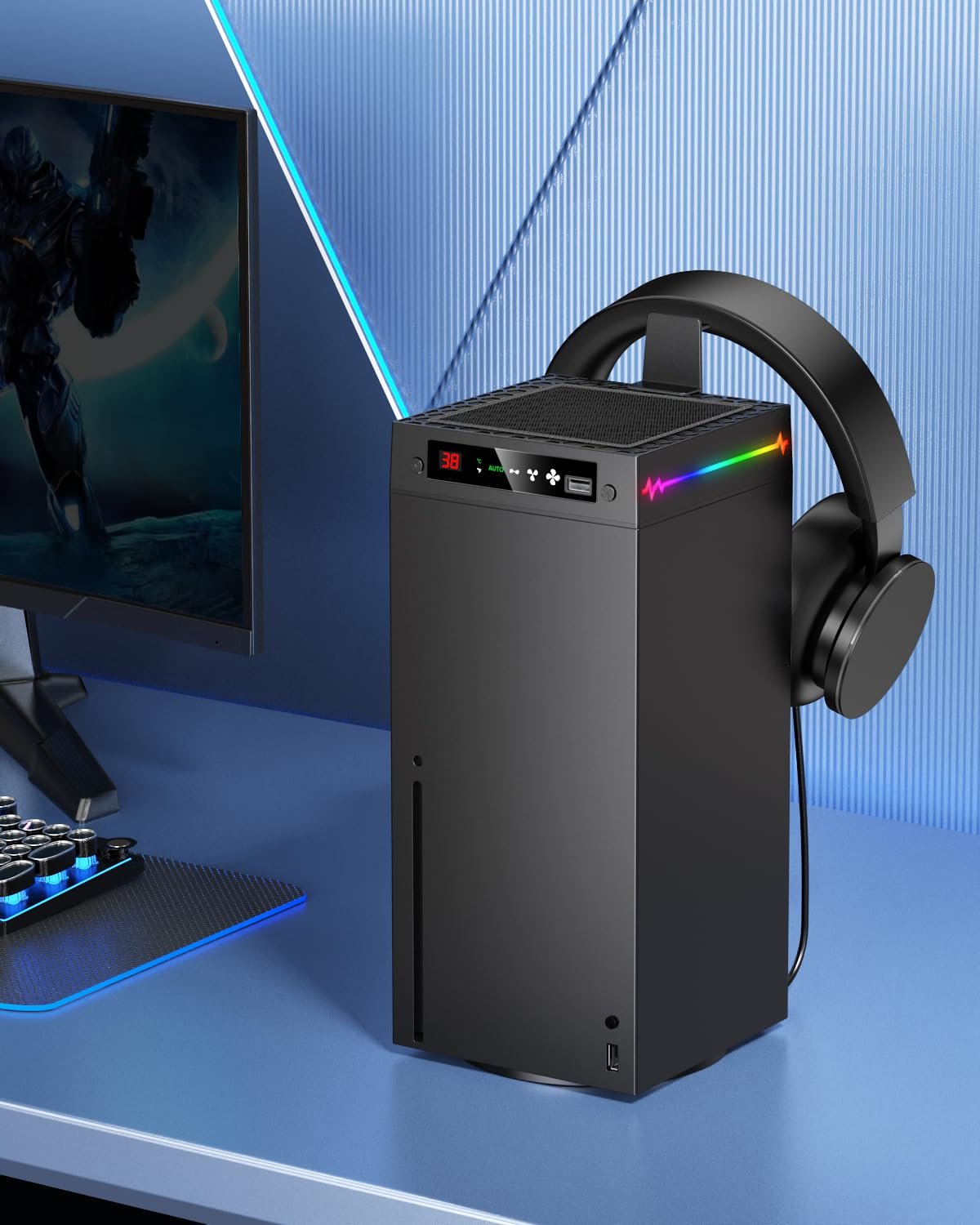 [LED Display] – Auto Cooling Fan for Xbox Series X with 9 RGB Light Modes, Cooling System Adjustable by Temperature with 4 Gears for Xbox Series X Console,Cooler & Light Switch,Headset Hook,USB Port