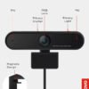Lenovo Cámara web HD 1080p (300 FHD) – Cámara de monitor con gran angular de 95°, giro e inclinación de 360°, micrófonos duales, cámara de escritorio acoplable con obturador de privacidad para trabajo