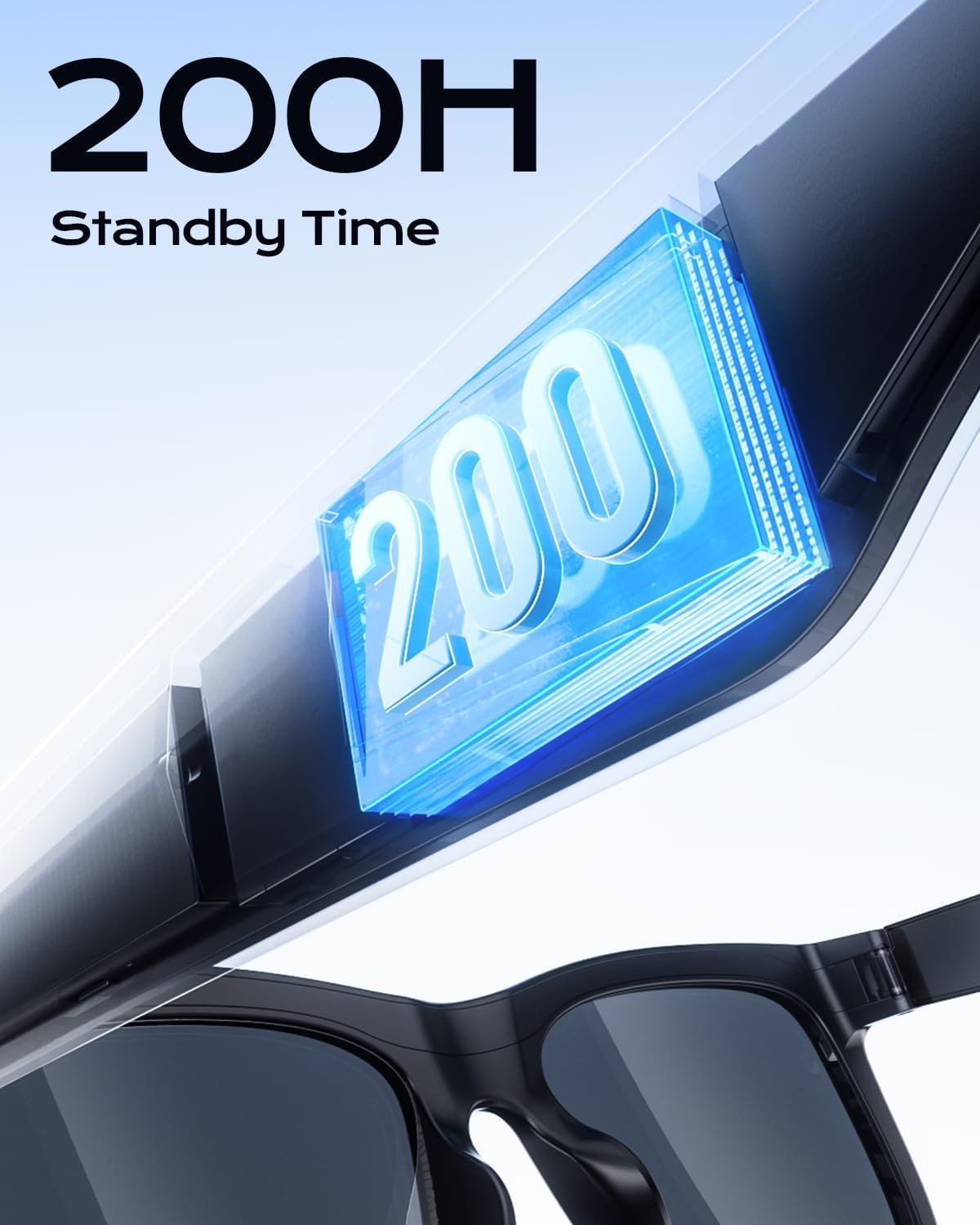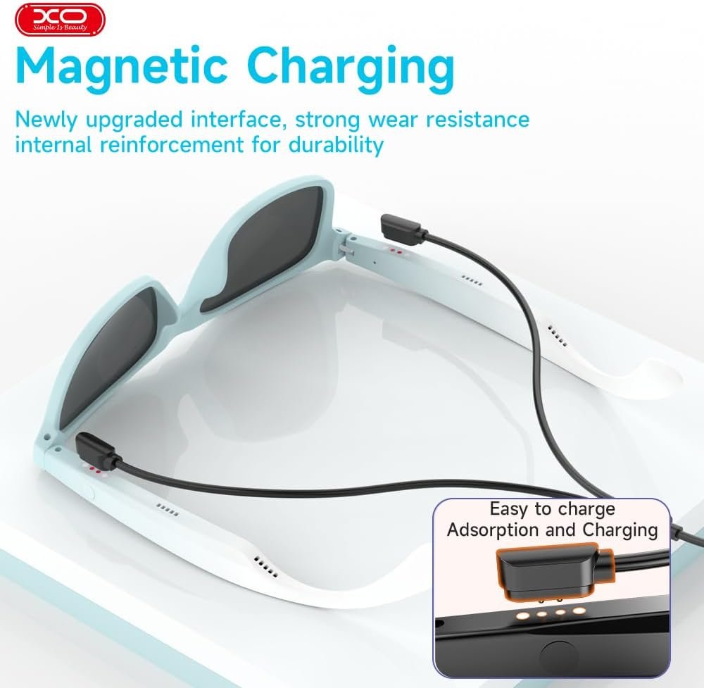 - Batería de alta calidad y espera de 200 horas: los lentes inteligentes XO funcionan con baterías de alta calidad que tardan solo 2 horas en cargarse completamente y pueden reproducir continuamente hasta 8 horas, lo que es duradero y seguro. El tiempo de espera puede alcanzar las 200h, por lo que no tiene que cargar con frecuencia.