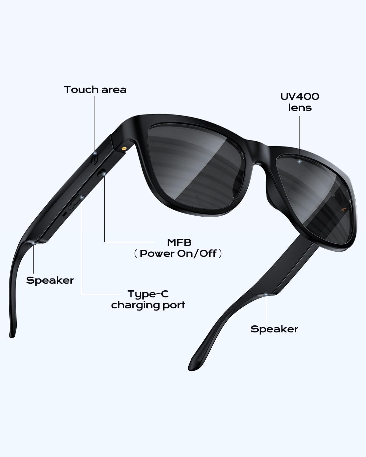 - Potentes botones multifunción: reproduce o pausa música, gestiona llamadas, activa funciones de asistente de voz con un solo botón, haciendo que tus lentes de sol Bluetooth inteligentes sean elegantes y fáciles de usar.