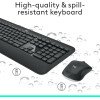 • Precisión de escritura: una experiencia familiar al instante, escribe con facilidad y comodidad en este teclado inalámbrico de tamaño completo, con reducción de ruido, reposamanos, diseño resistente a derrames (1), patas inclinables ajustables