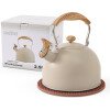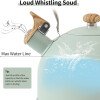 Fácil de rellenar y limpiar. Asegúrate de que el nivel del agua esté por debajo de la salida de agua del hervidor para asegurarte de que el silbato funcione correctamente