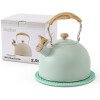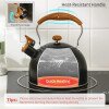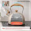 Utiliza material profesional de grado alimenticio y exquisita artesanía. Silbidos fuertes que evitan que te olvides de apagarlo y secar el agua. Mango y boquilla resistentes al calor, más seguro de usar. La capacidad de 2.5 cuartos de galón es ideal para servir en toda una familia o fiesta. Aplicable para todo tipo de estufas
