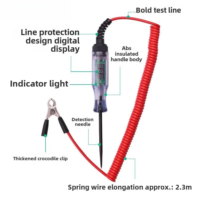 Luz de prueba automotriz de 9V-72V, sonda de circuito LED multifuncional, probador de voltaje digital con comprobador de fusibles, reparación eléctrica de automóviles