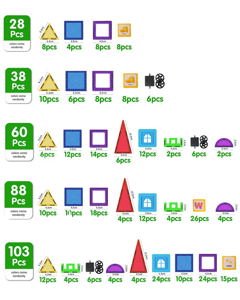 Nunca es demasiado pronto para comenzar a desarrollar la creatividad de los niños. Diseñado con STEM (ciencia, tecnología, ingeniería y matemáticas) en mente, el juego de construcción de baldosas magnéticas Magplayer ayuda a enseñar a los niños sobre la construcción creativa a través del juego. Los pequeños pueden ser creativos y construir cualquier cosa desde lo que ven en la vida diaria. Los niños pueden adquirir un fuerte sentido del color, formas geométricas y practicar las habilidades STEM. Pegatinas de cognición opcionales, enriquecen las características educativas de este juguete de bloques de construcción magnéticos.