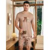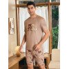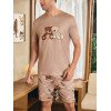 Manfinity CoupledUp Conjunto de pijama casual para hombre con estampa de oso de dibujos animados, de manga corta y pantalón corto