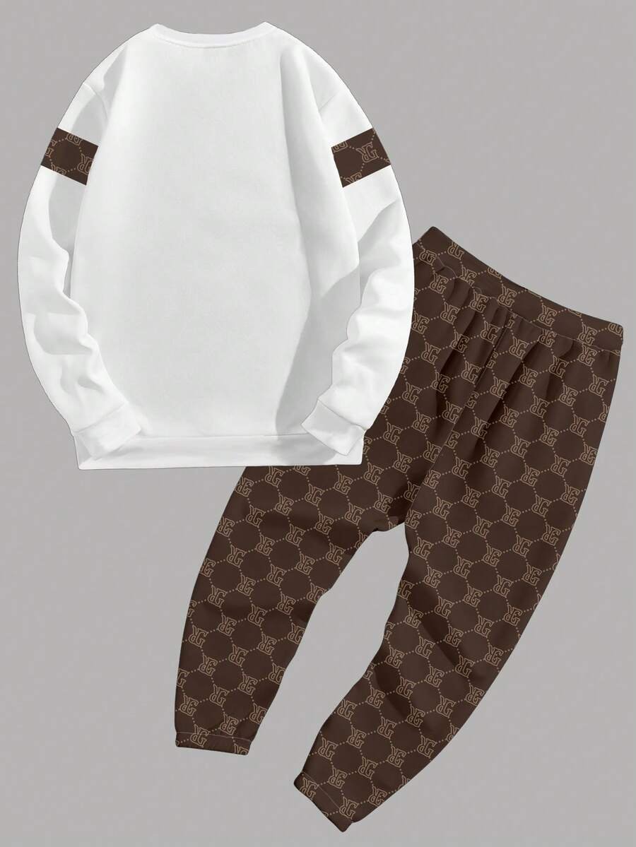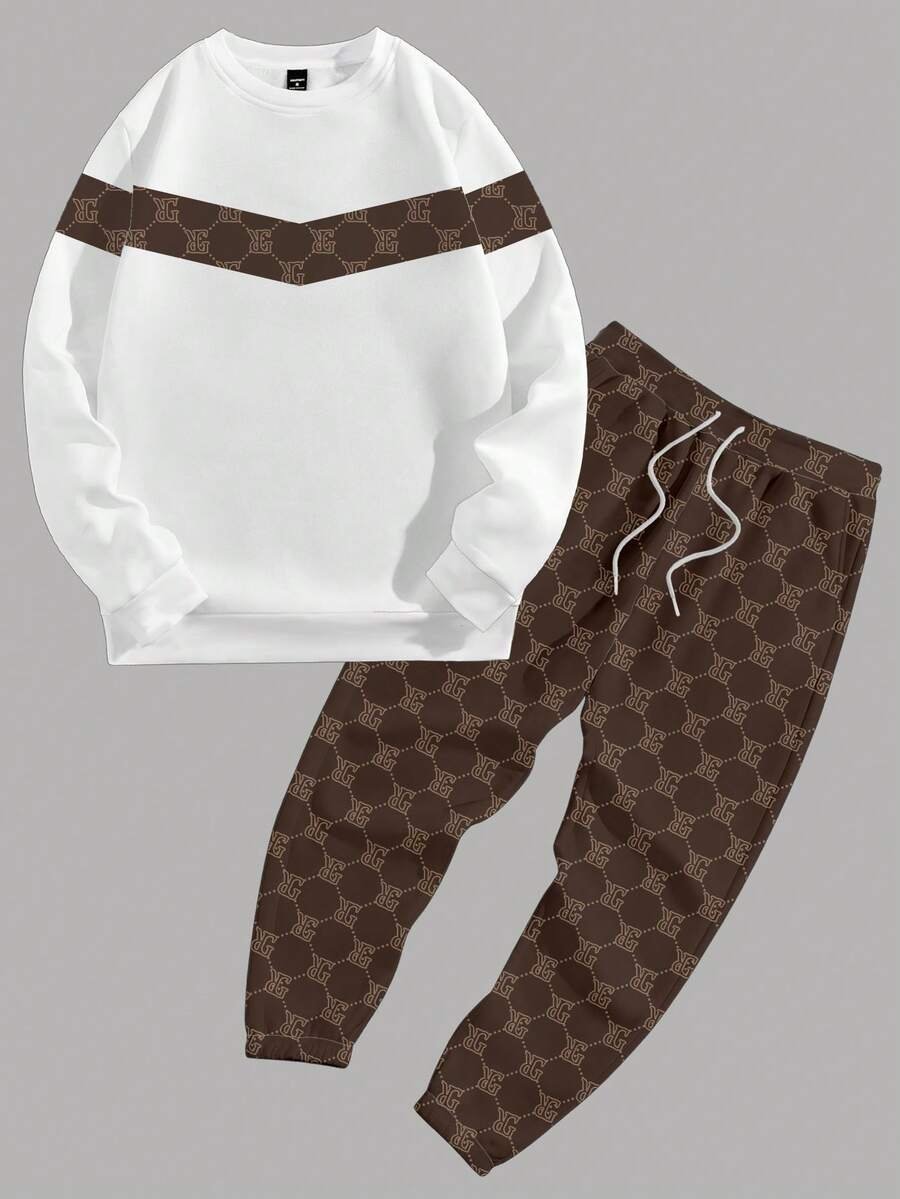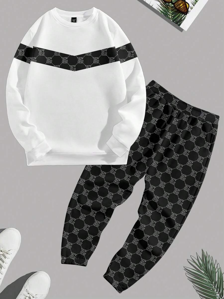 Manfinity EZcore Conjunto de sudadera y pantalón de chándal casual con gráfico de letras de contraste para hombre, ropa de otoño, atuendos acogedores