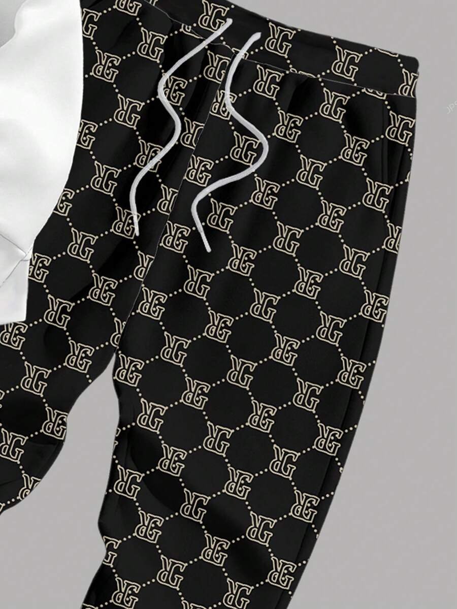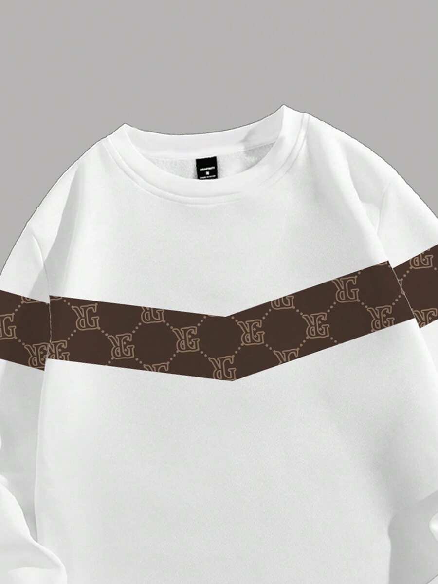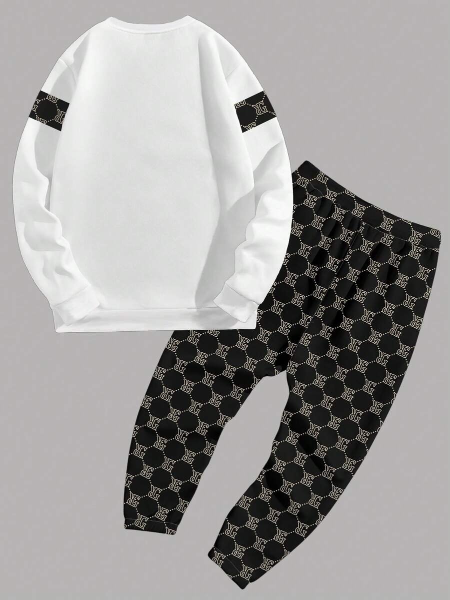 Manfinity EZcore Conjunto de sudadera y pantalón de chándal casual con gráfico de letras de contraste para hombre, ropa de otoño, atuendos acogedores