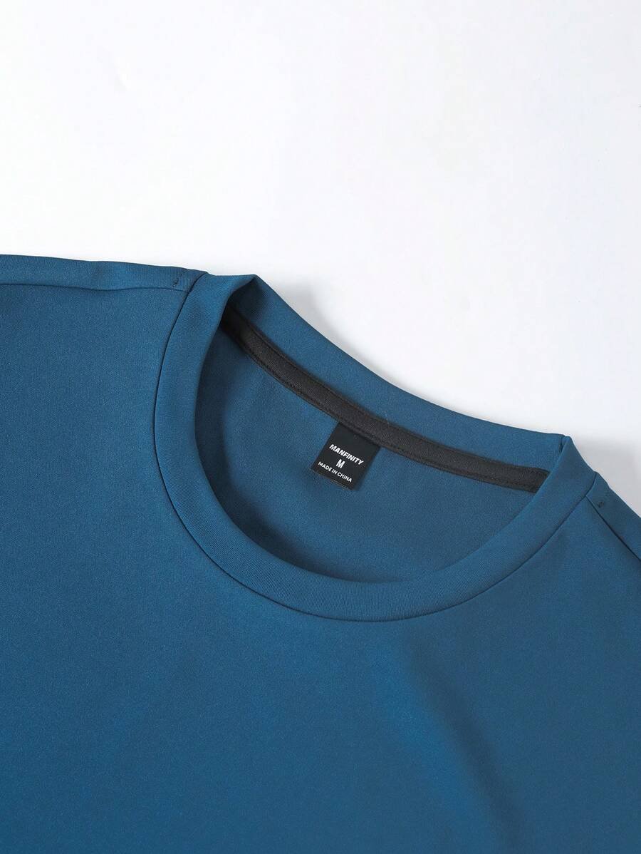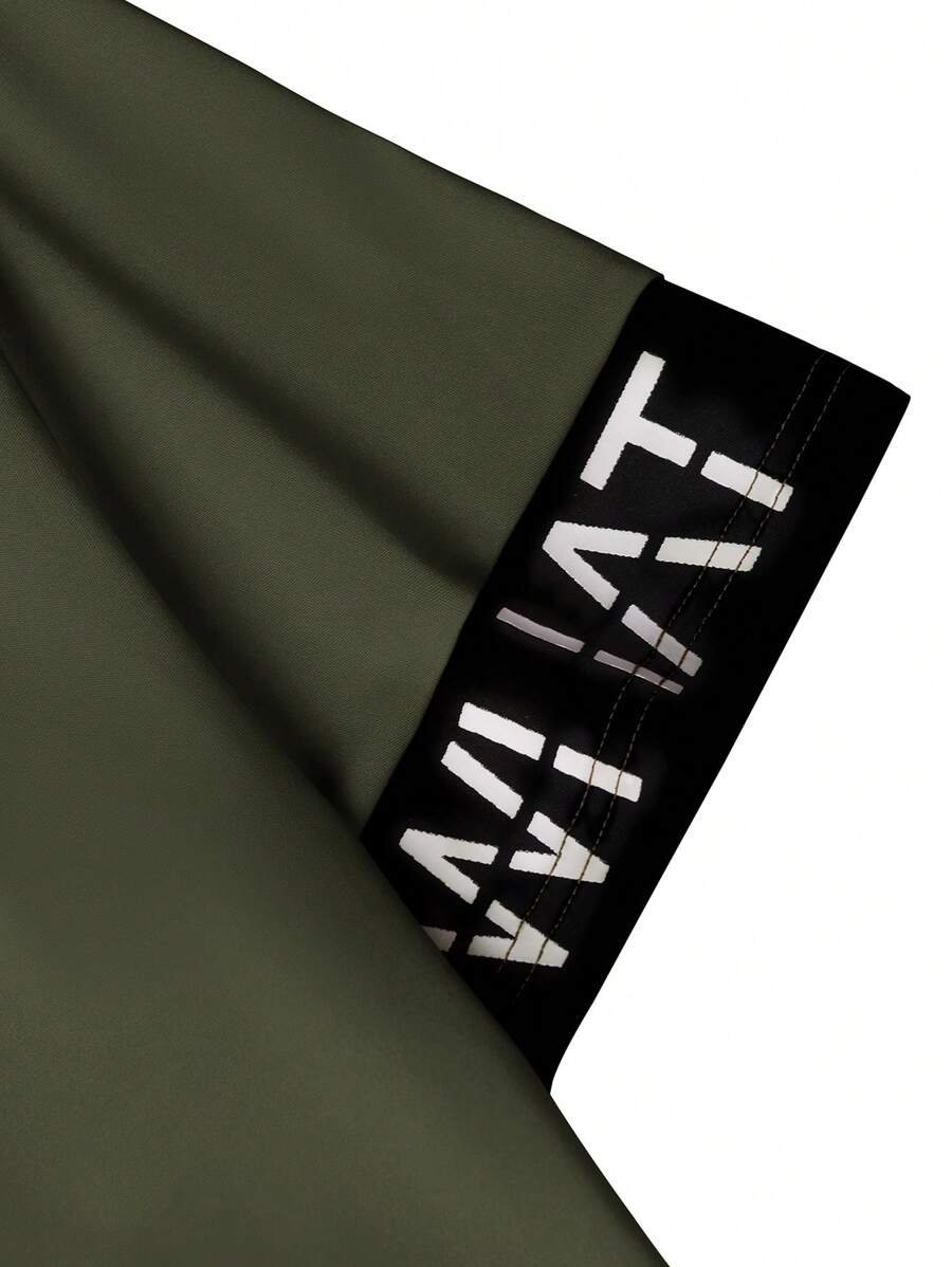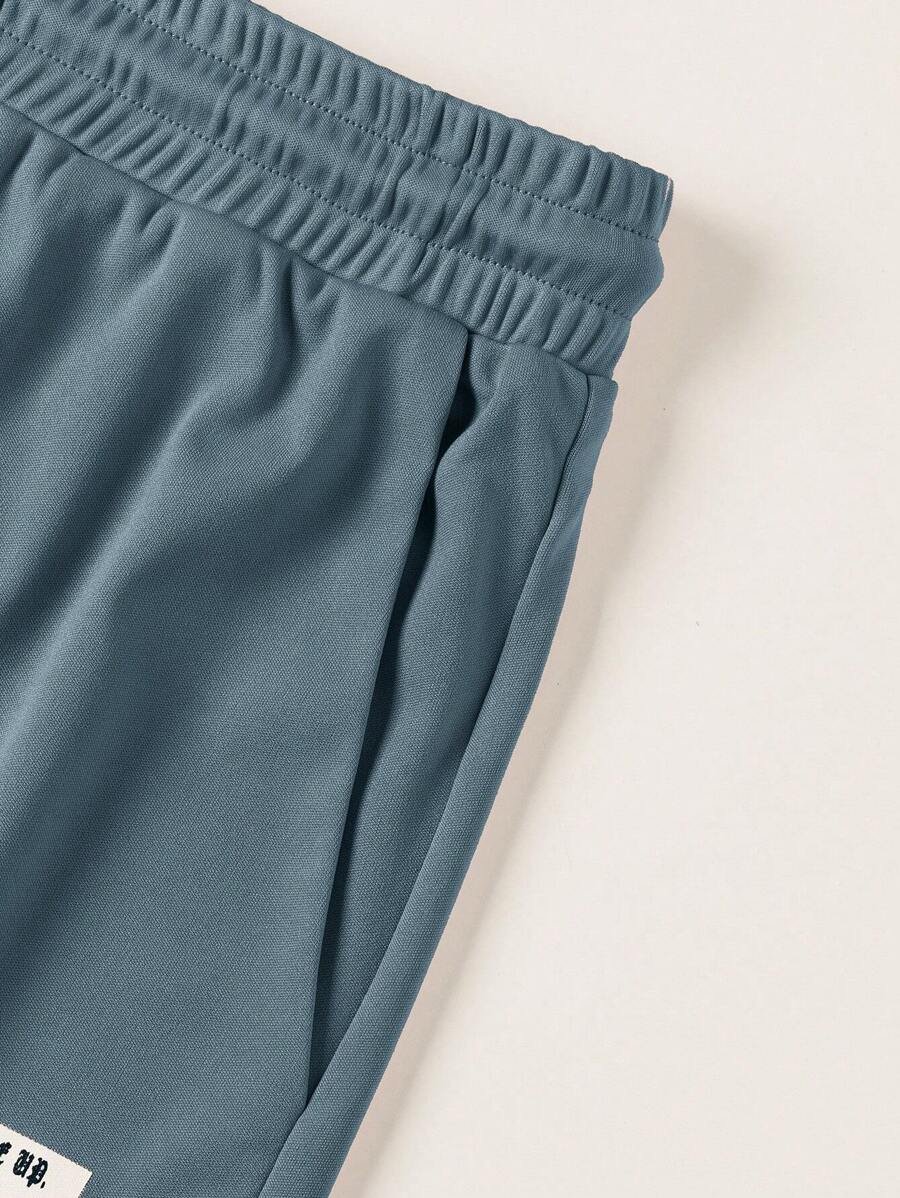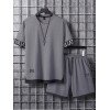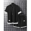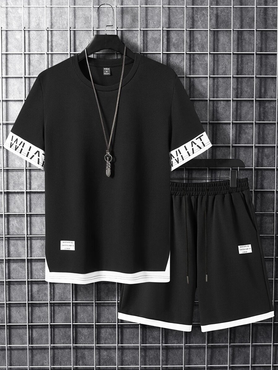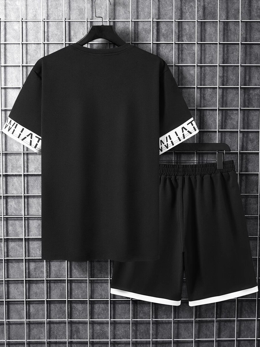 Manfinity Homme Conjunto de camiseta casual de manga corta con cuello redondo y estampado de letras, y pantalones cortos con cordón en la cintura para hombre, conjunto cómodo