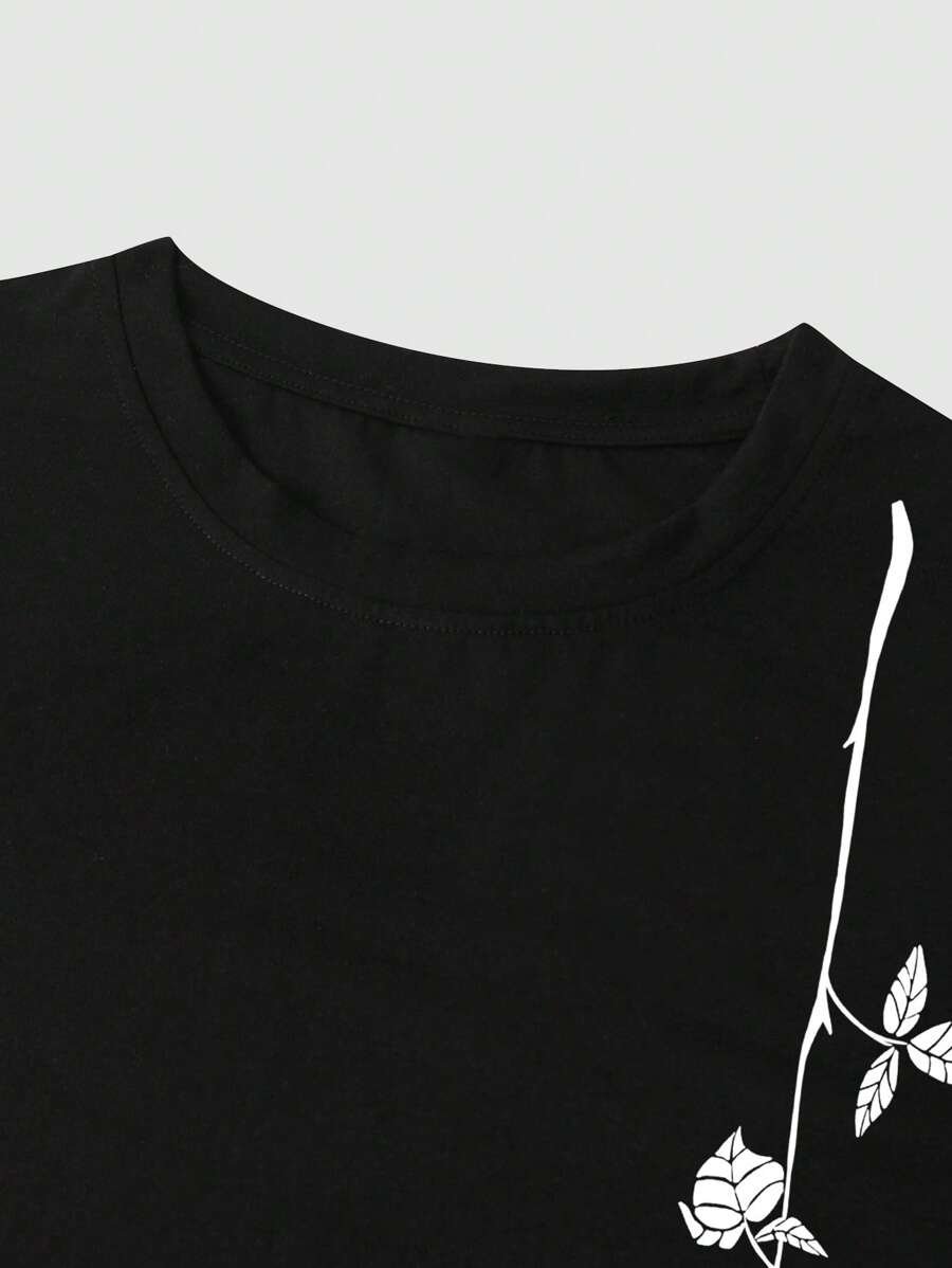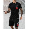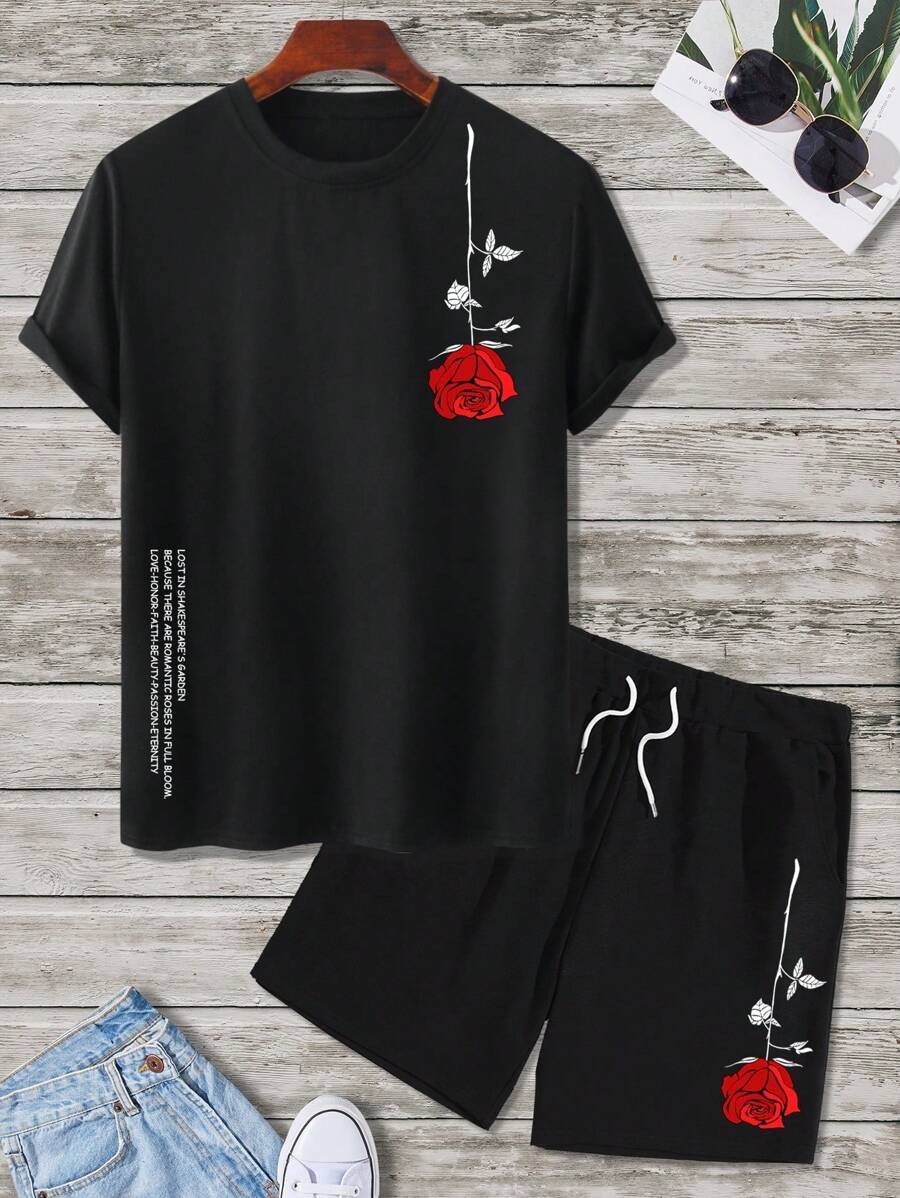 Manfinity Homme Conjunto de camiseta de manga corta con estampado floral y eslogan y pantalones cortos con cordón en la cintura para hombre, para ir de salida
