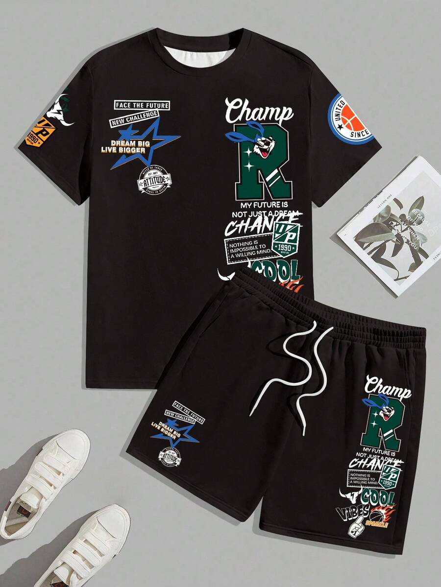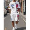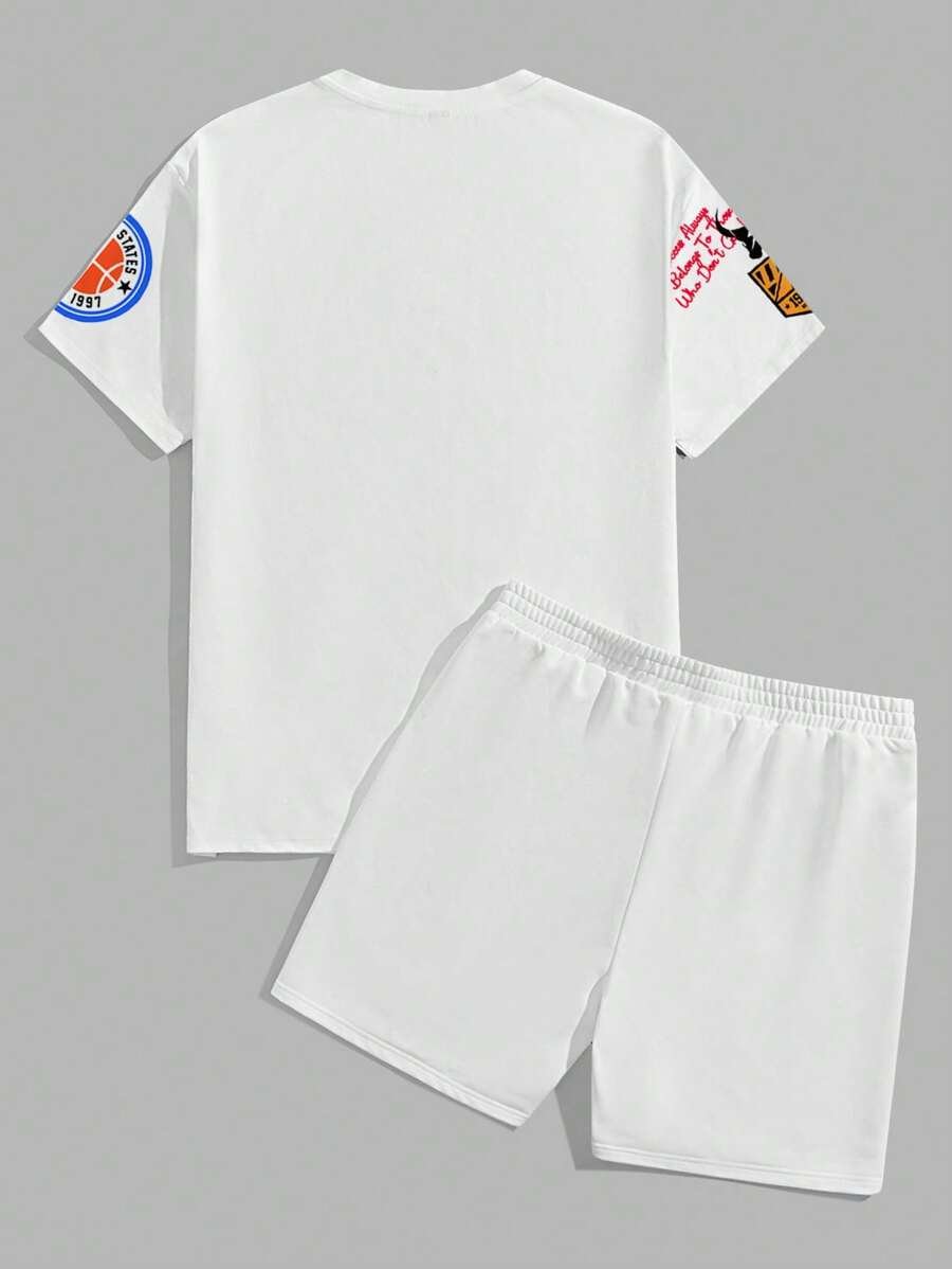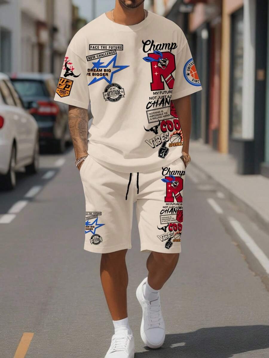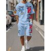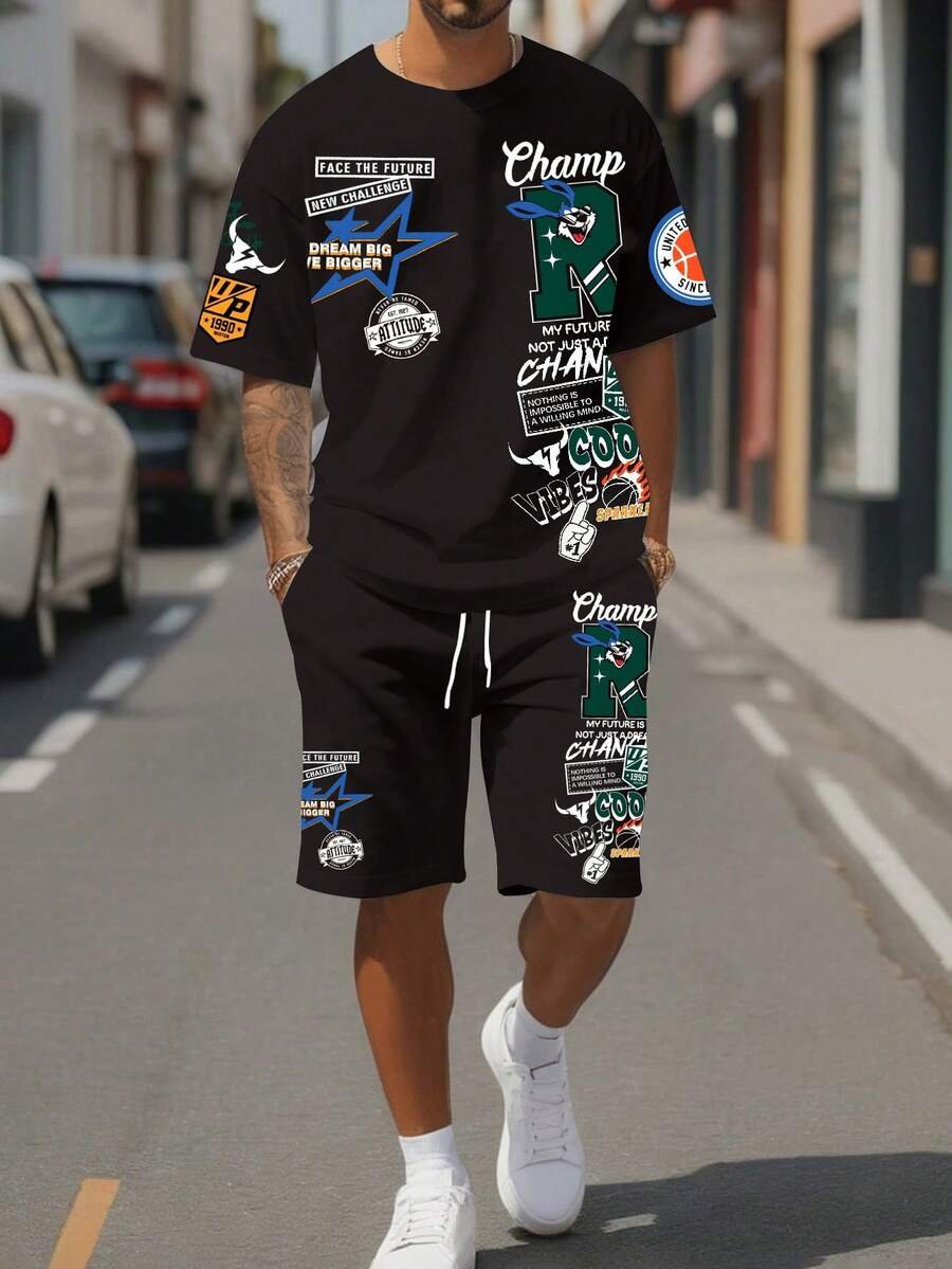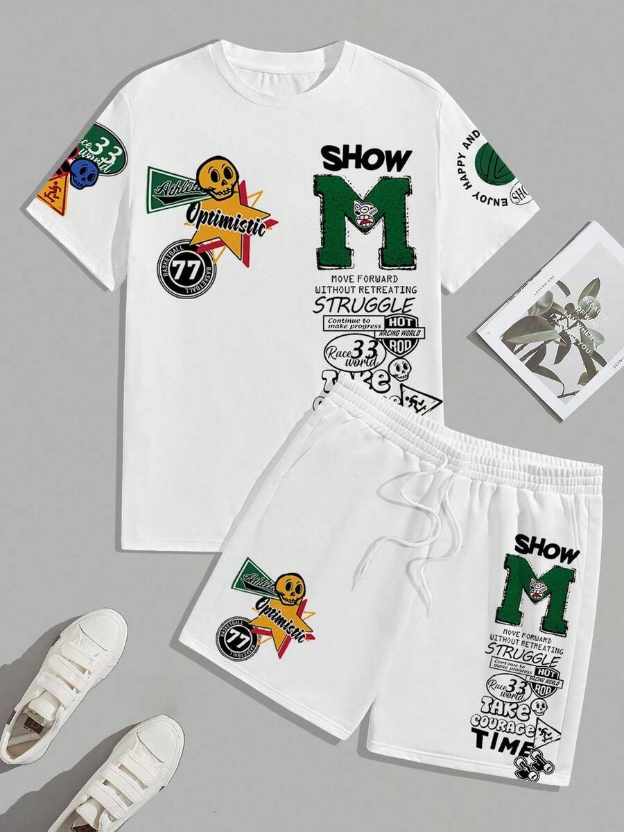 Manfinity Homme Conjunto de camiseta gráfica casual y pantalones cortos para hombres, adecuado para el verano, conjunto de 2 piezas, atuendos cómodos