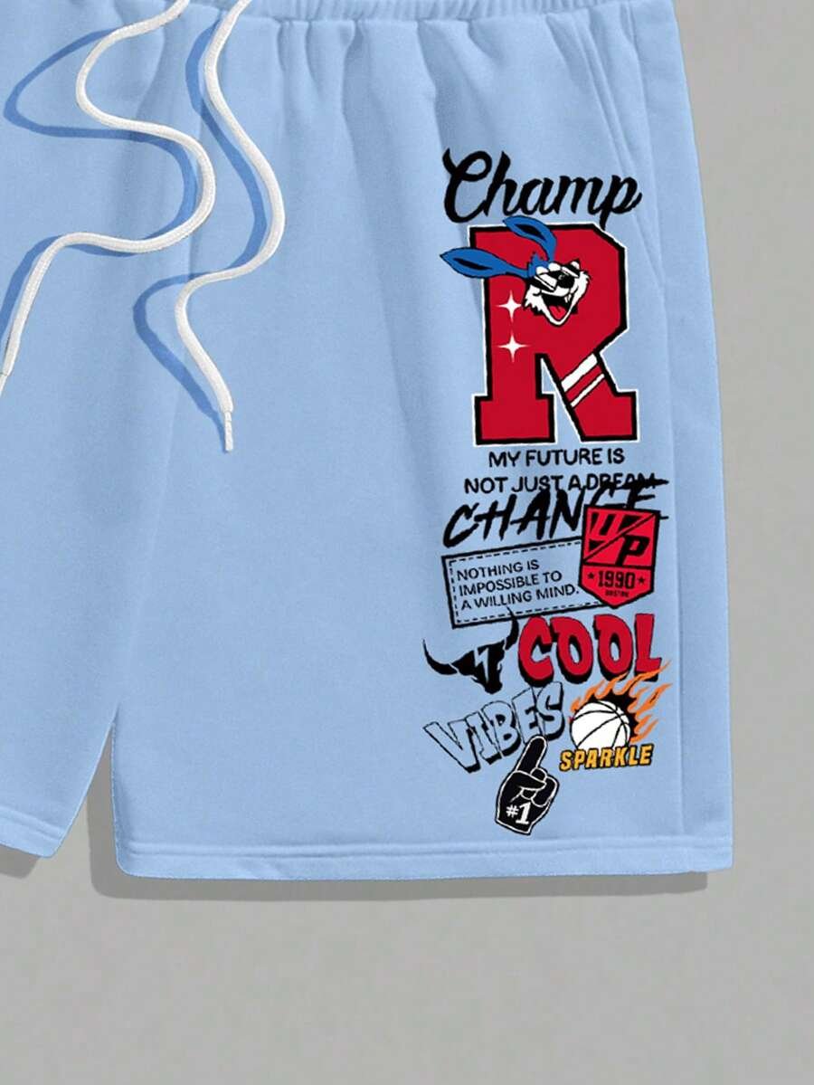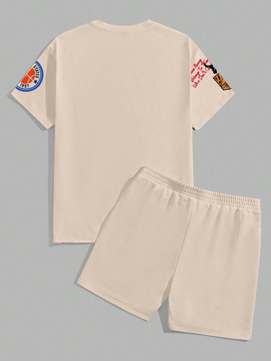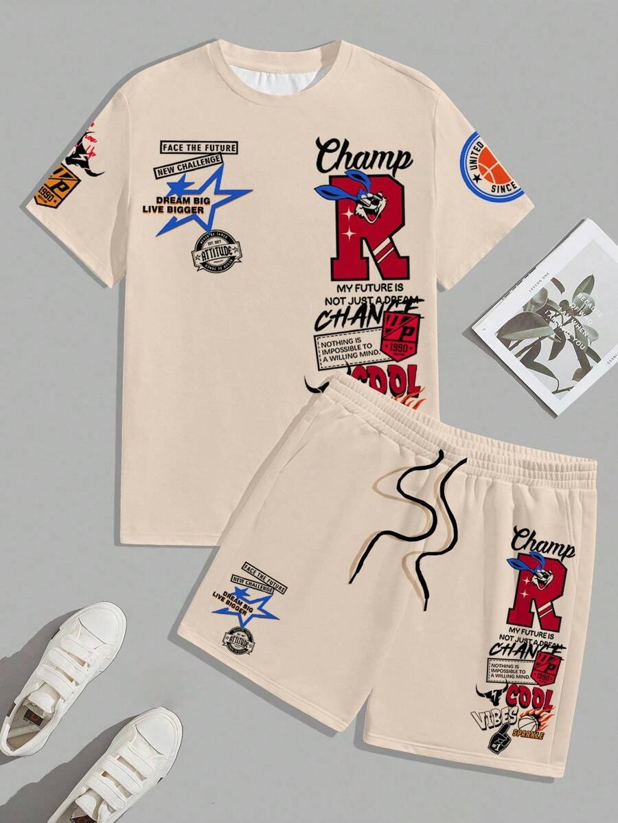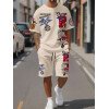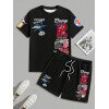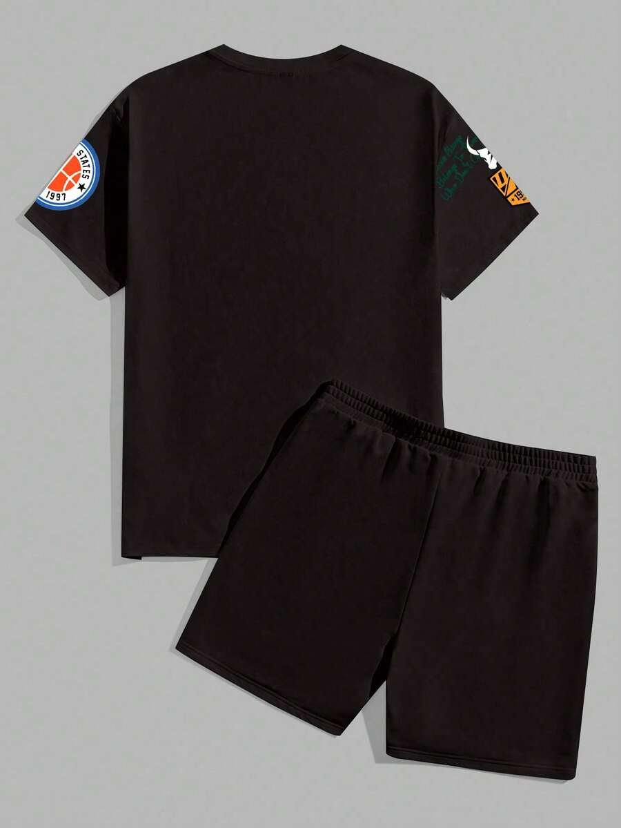 Manfinity Homme Conjunto de camiseta gráfica casual y pantalones cortos para hombres, adecuado para el verano, conjunto de 2 piezas, atuendos cómodos