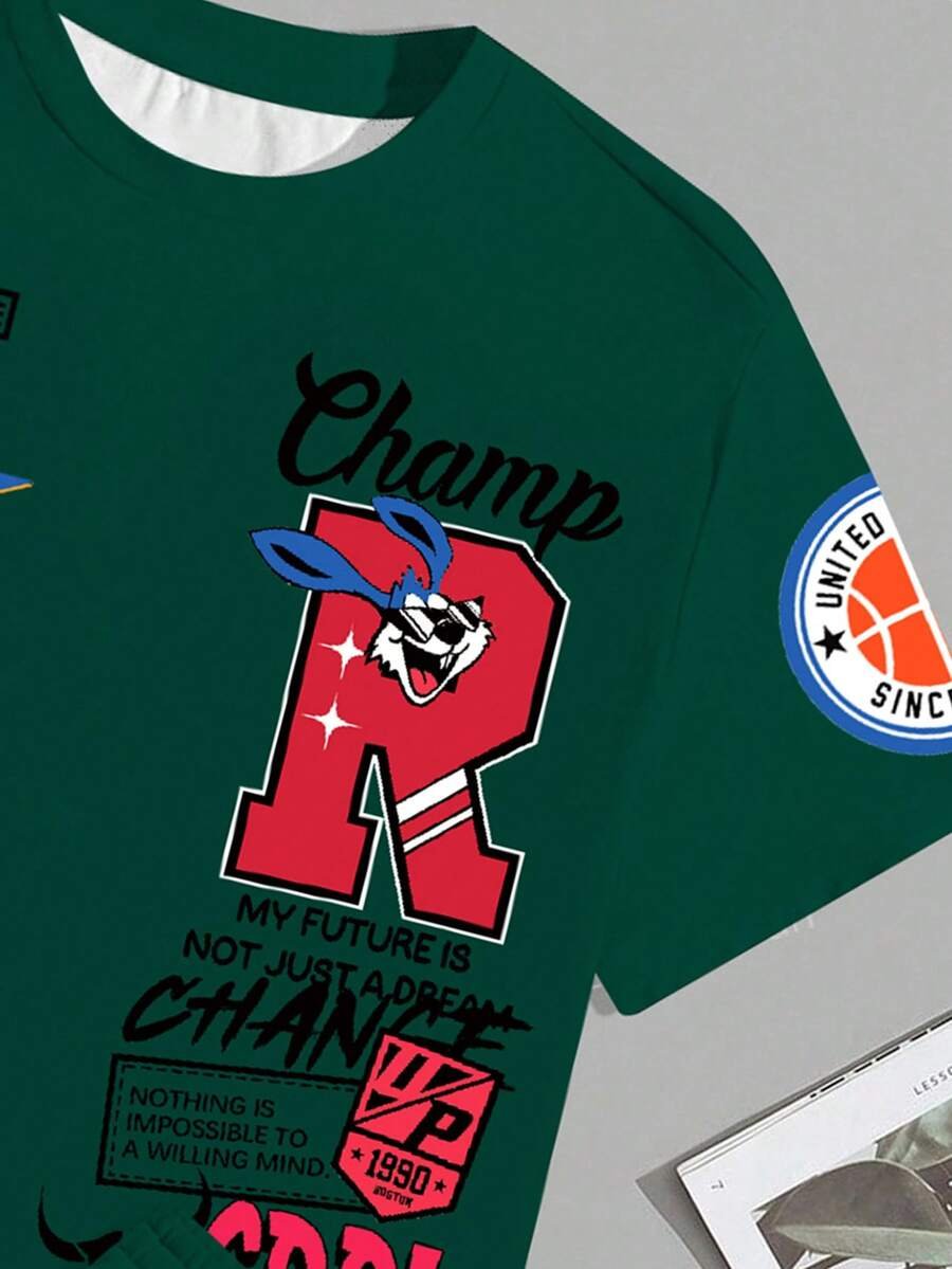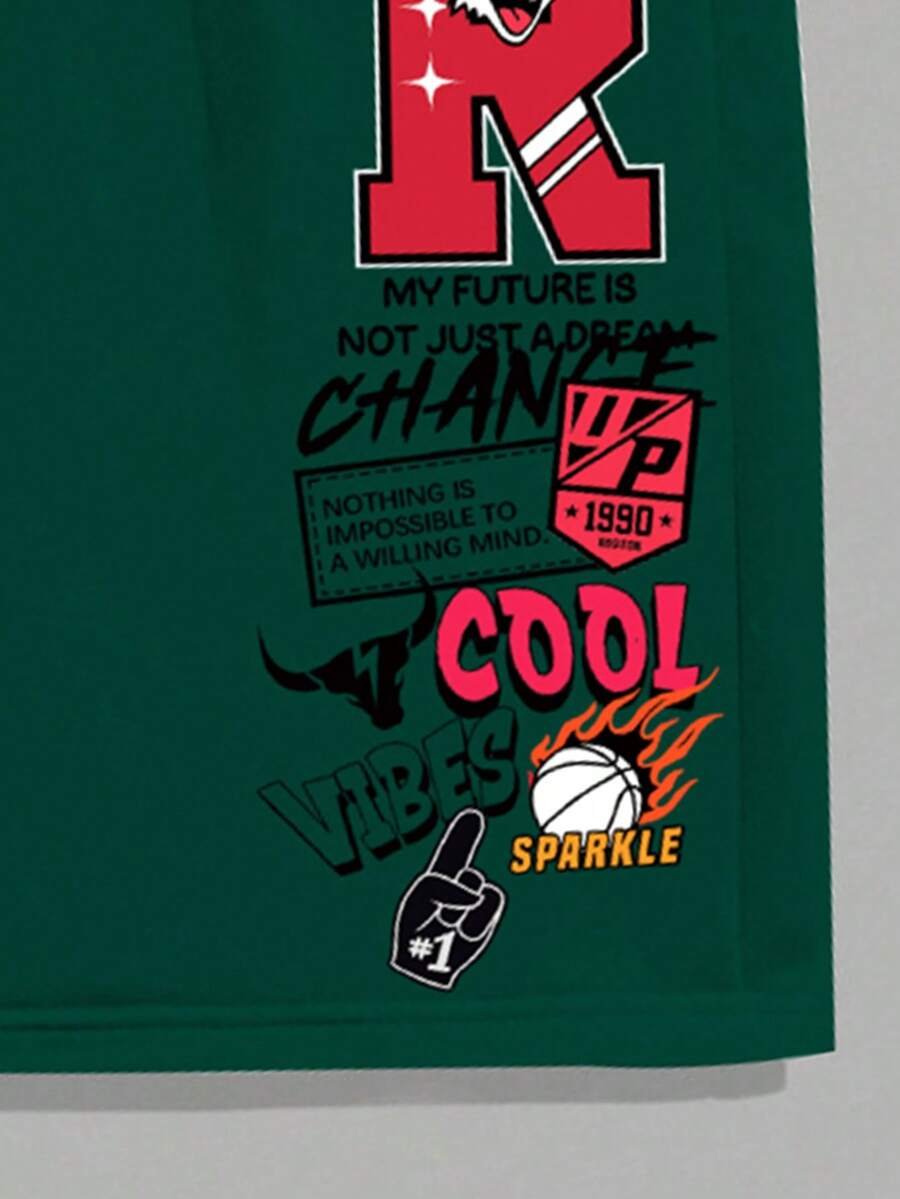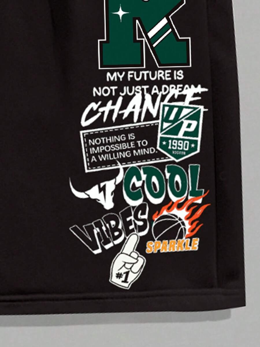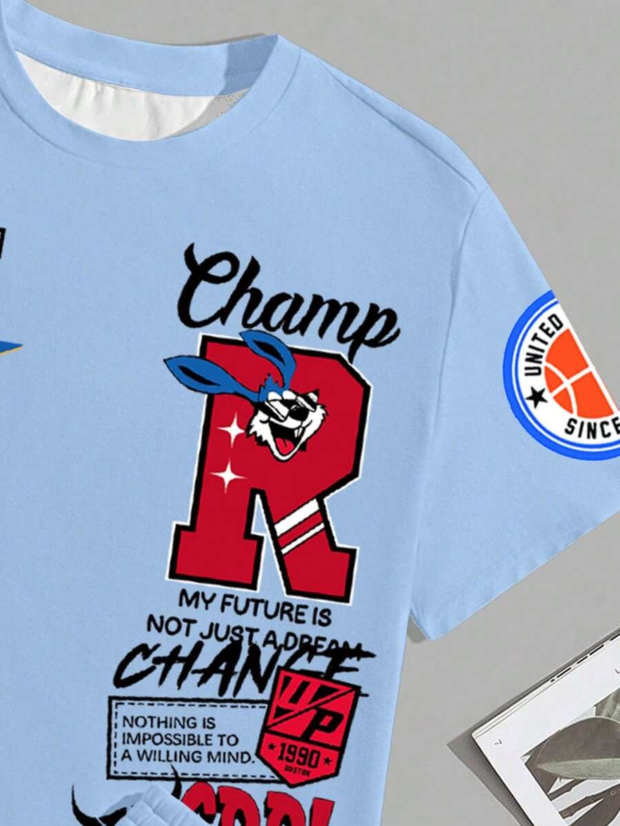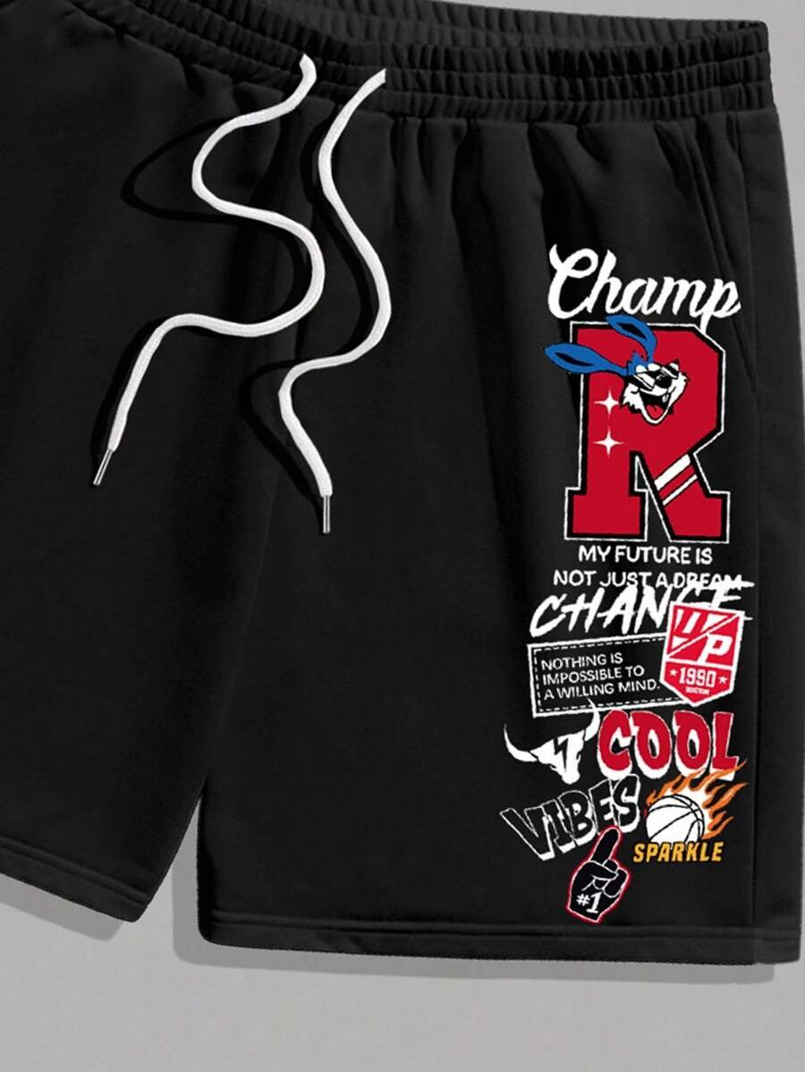Manfinity Homme Conjunto de camiseta gráfica casual y pantalones cortos para hombres, adecuado para el verano, conjunto de 2 piezas, atuendos cómodos