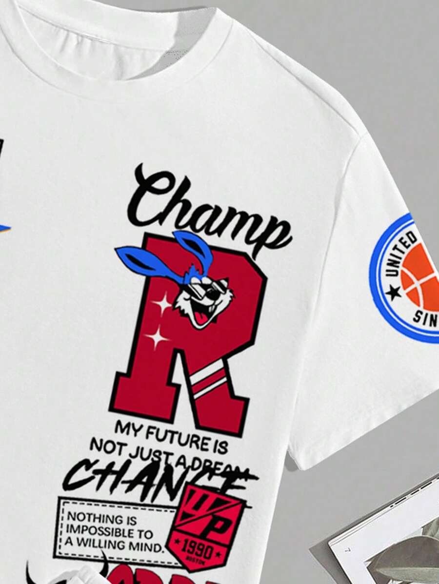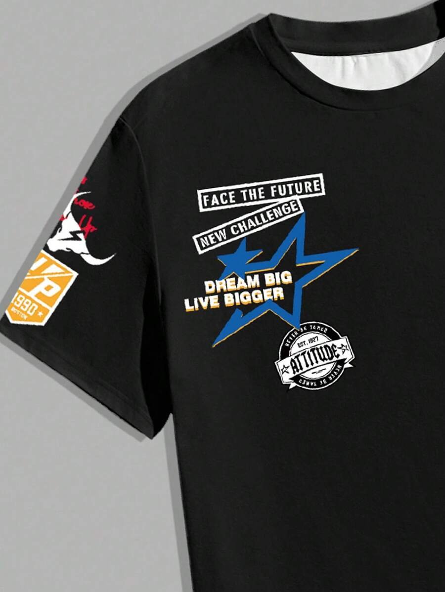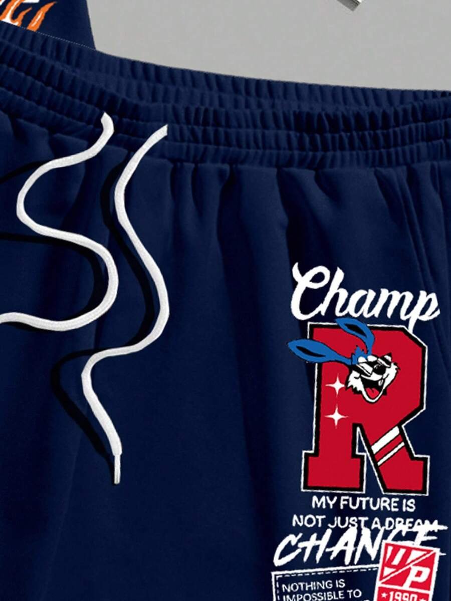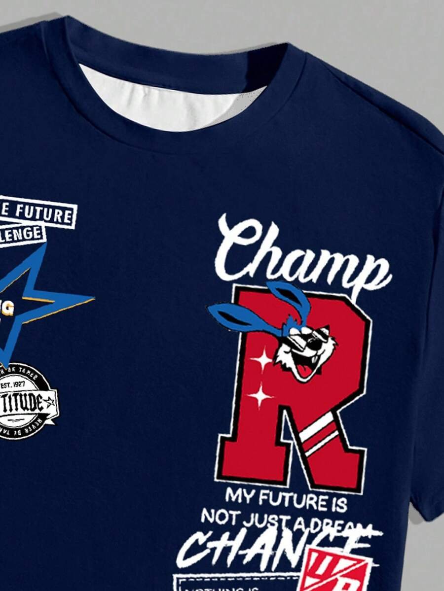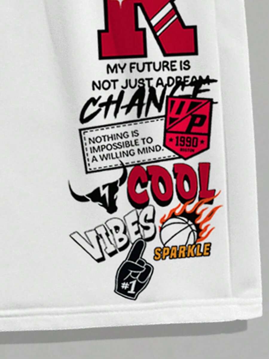 Manfinity Homme Conjunto de camiseta gráfica casual y pantalones cortos para hombres, adecuado para el verano, conjunto de 2 piezas, atuendos cómodos