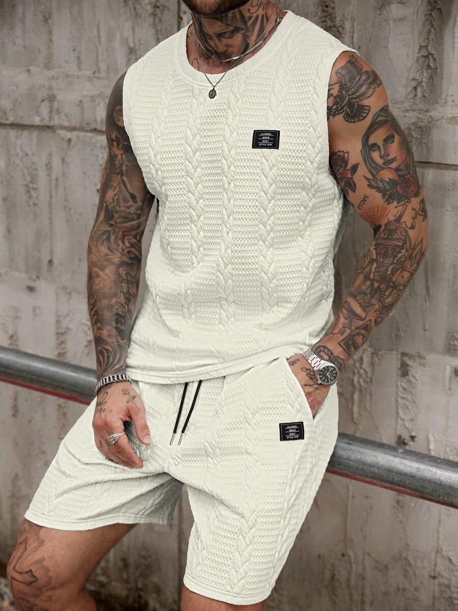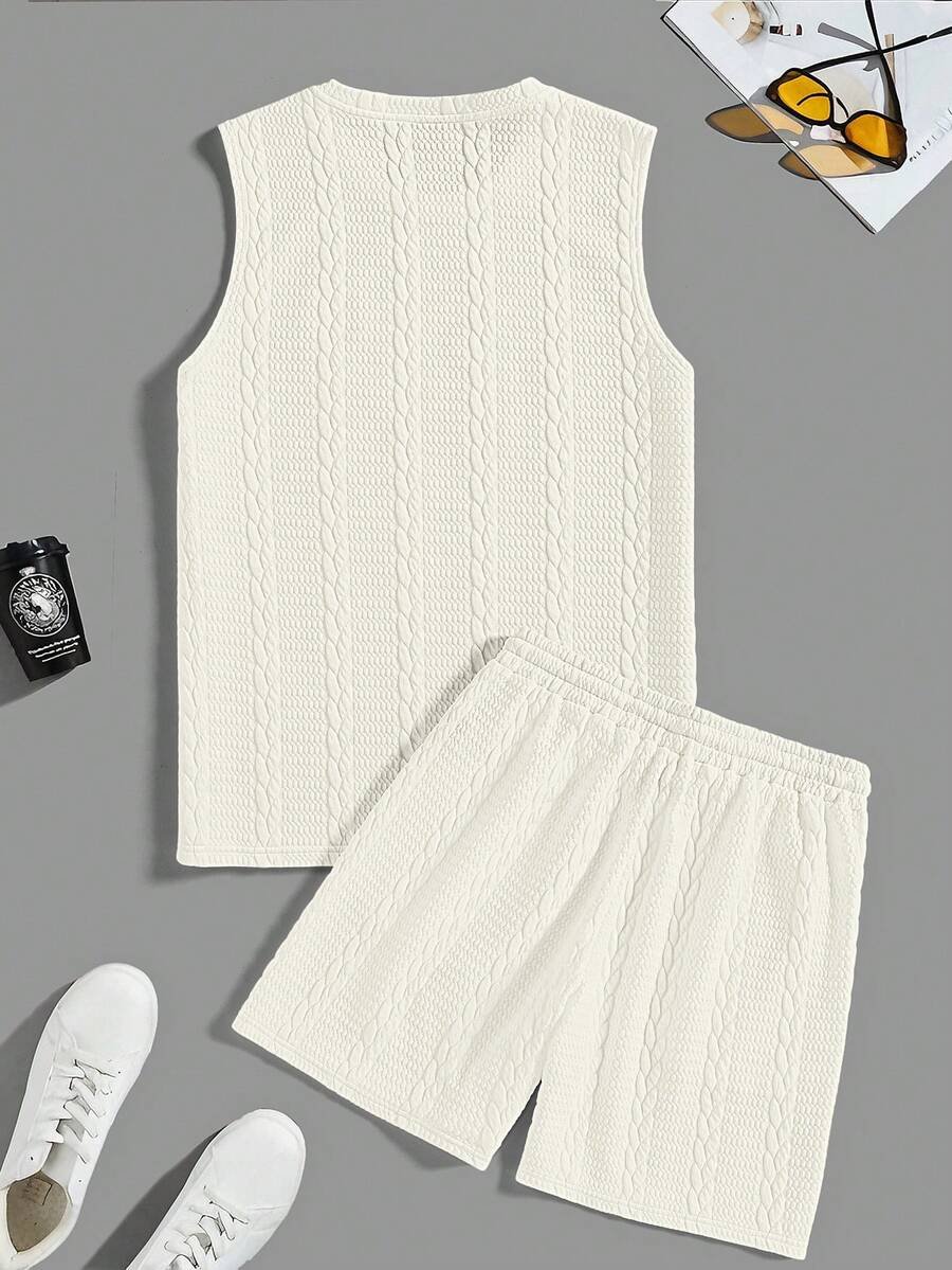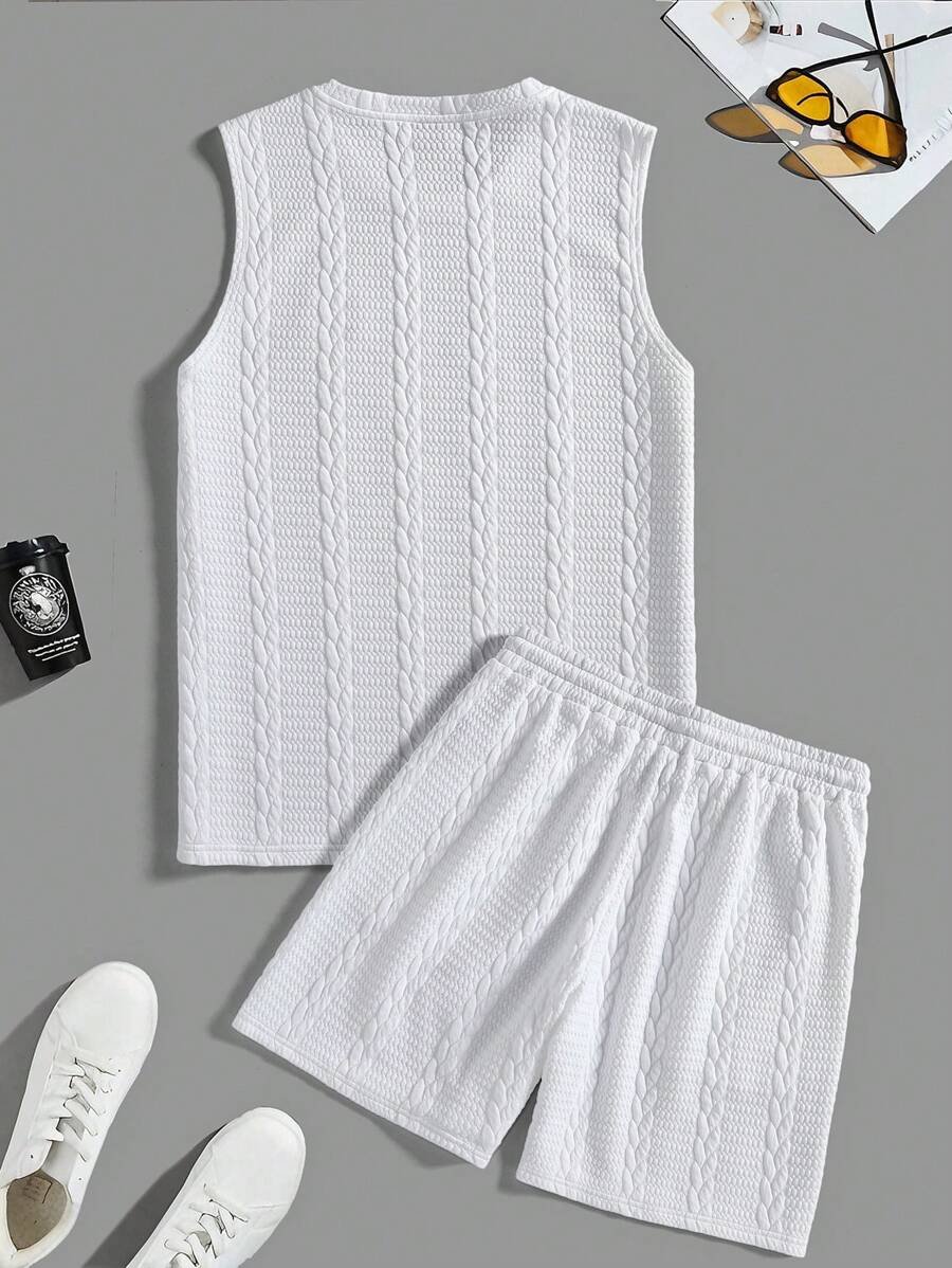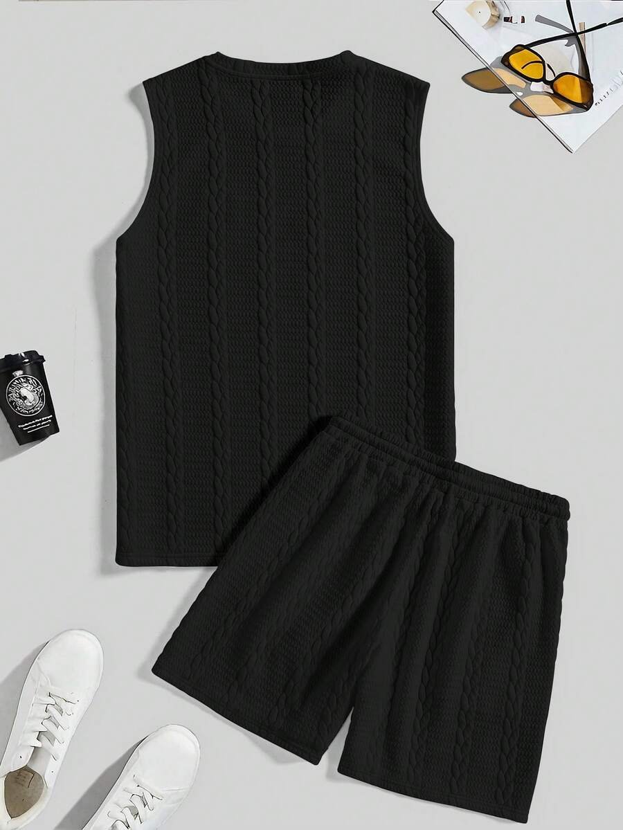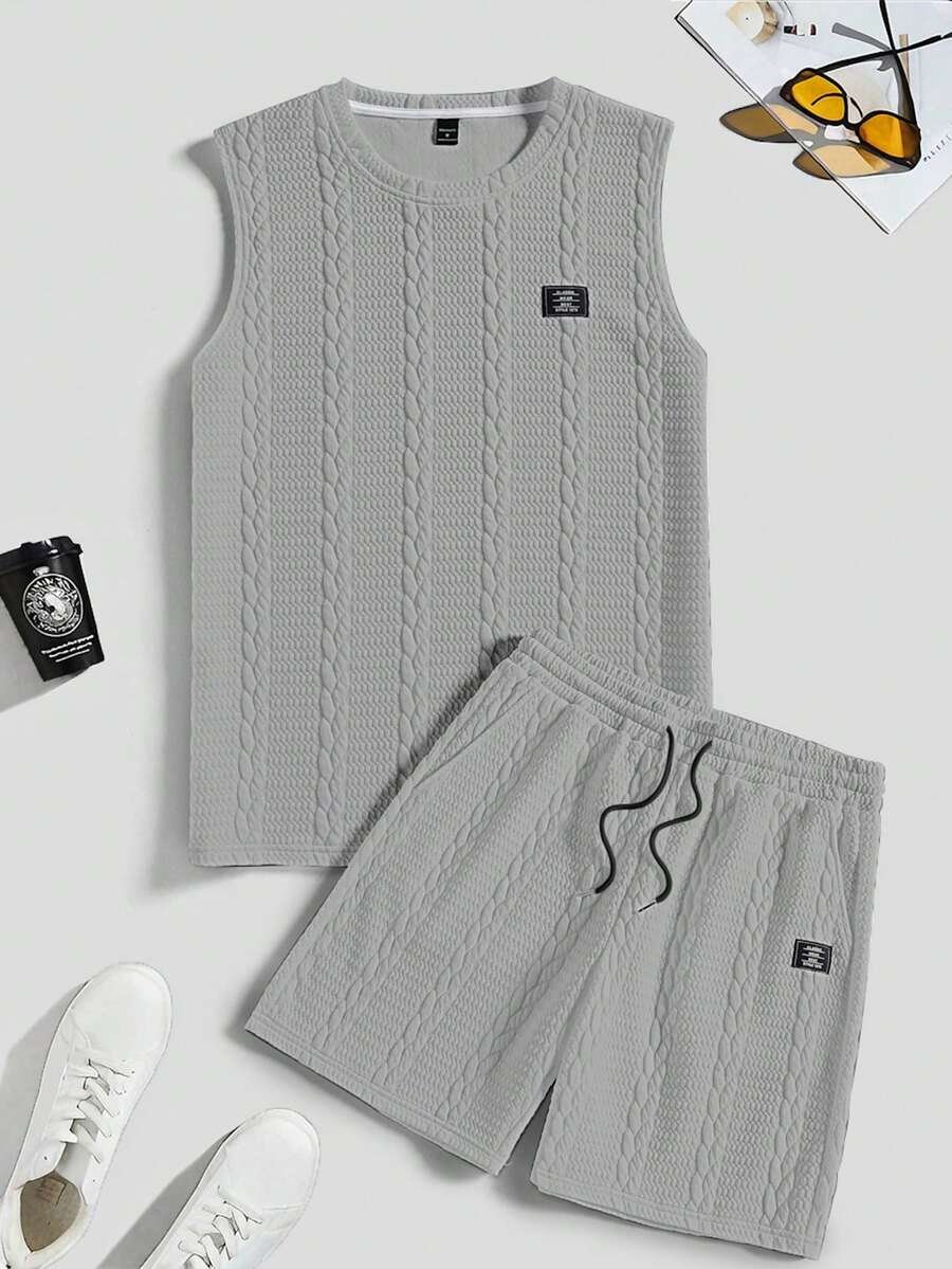 Manfinity Homme Conjunto de dos piezas de punto casual de hombre, juego de camiseta y pantalones cortos. Conjuntos de verano de dos piezas de pantalones cortos para hombre