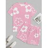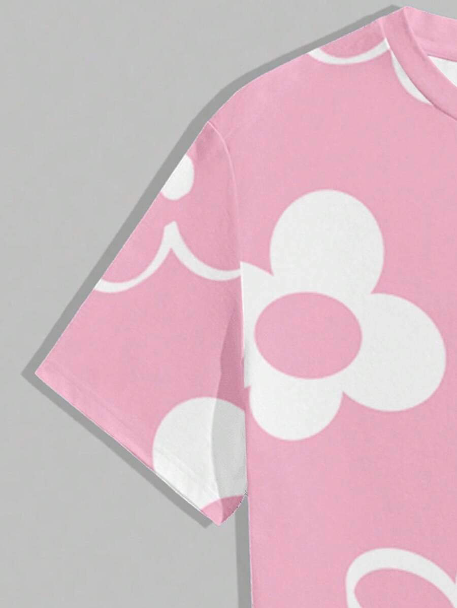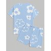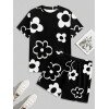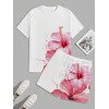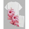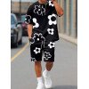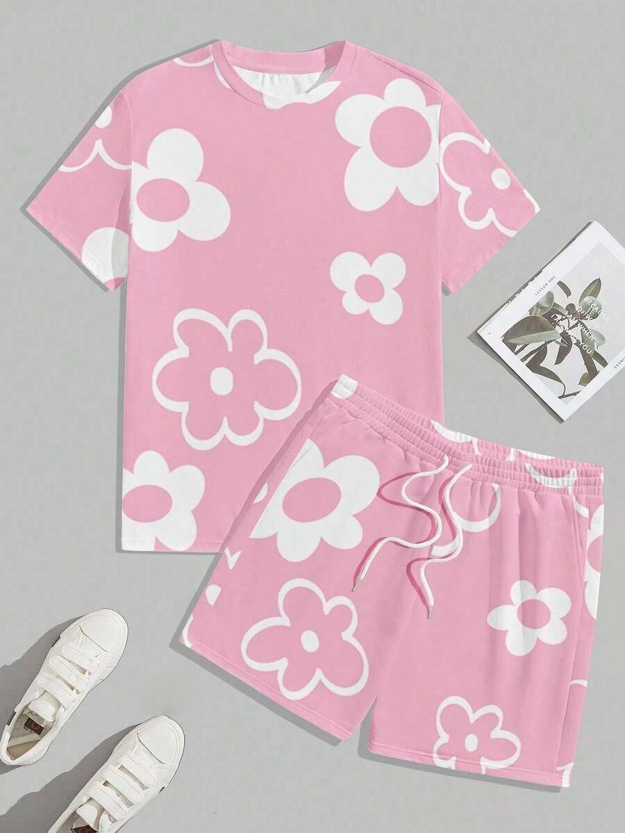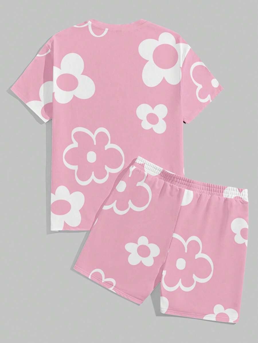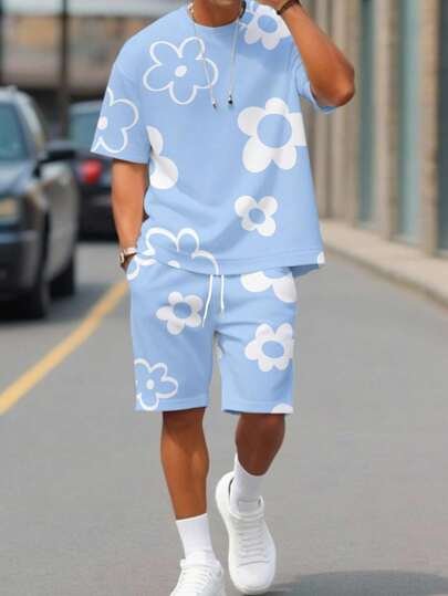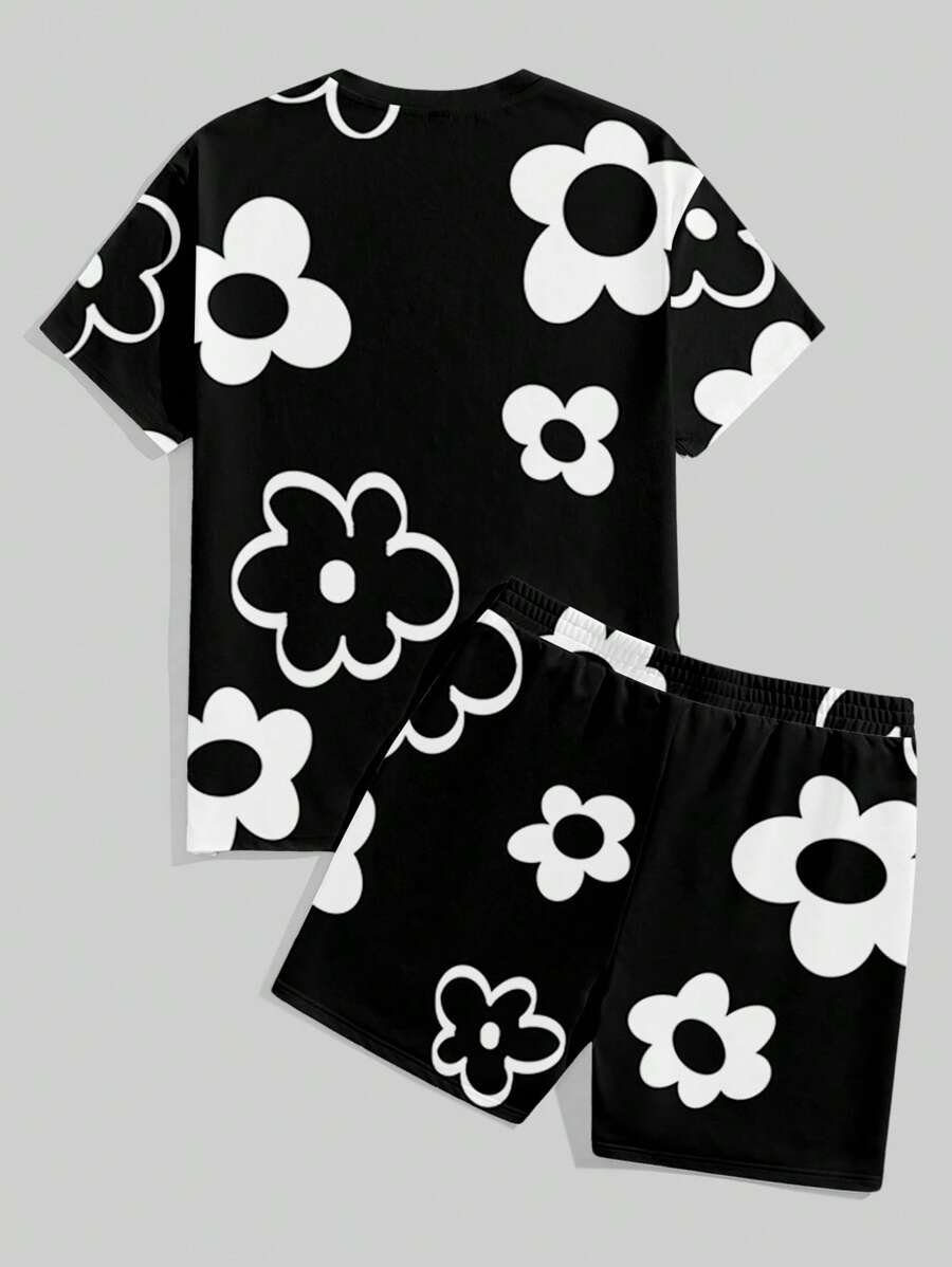 Manfinity Homme Set de 2 piezas de camiseta de manga corta casual y pantalones cortos holgados para hombres, conjunto de pantalones cortos de 2 piezas con flores, atuendos cómodos