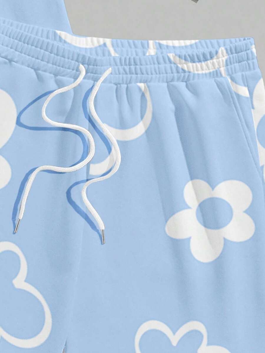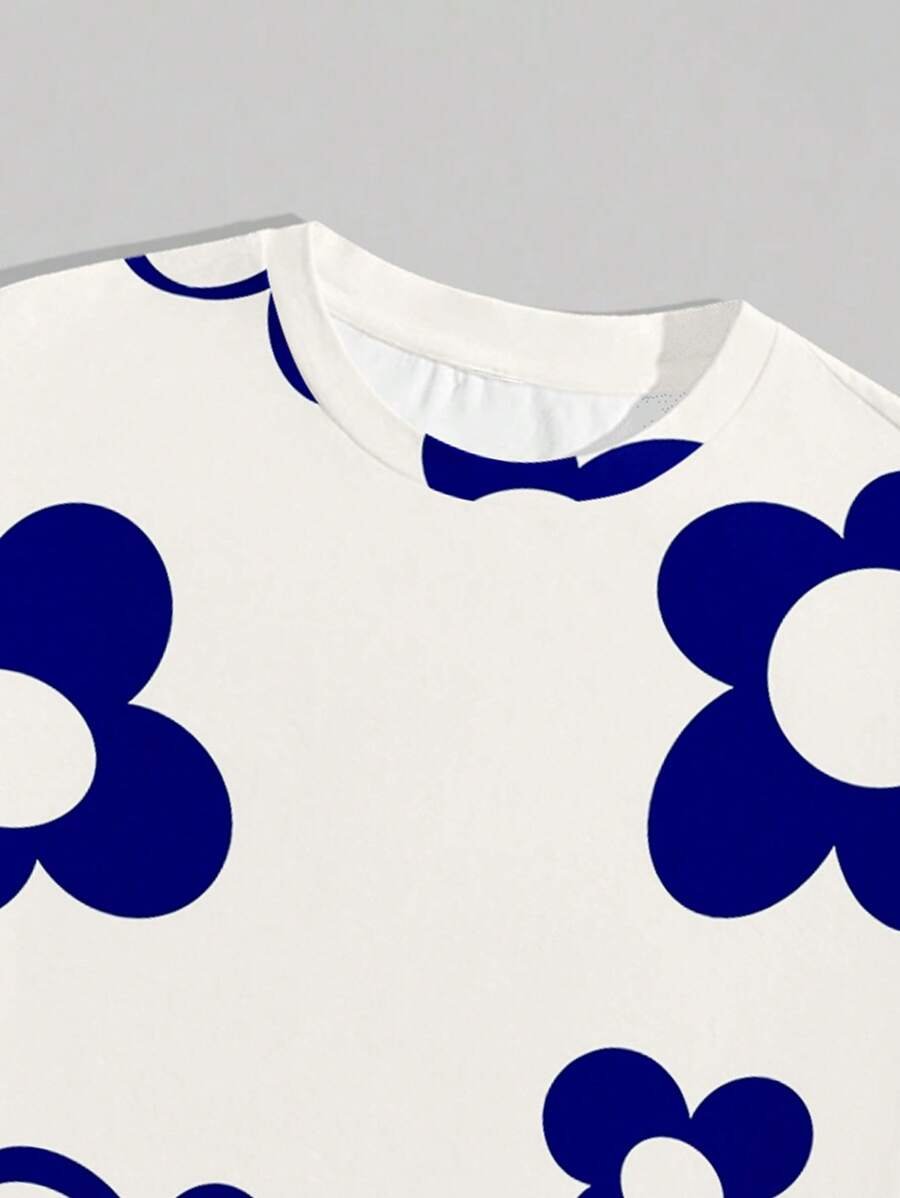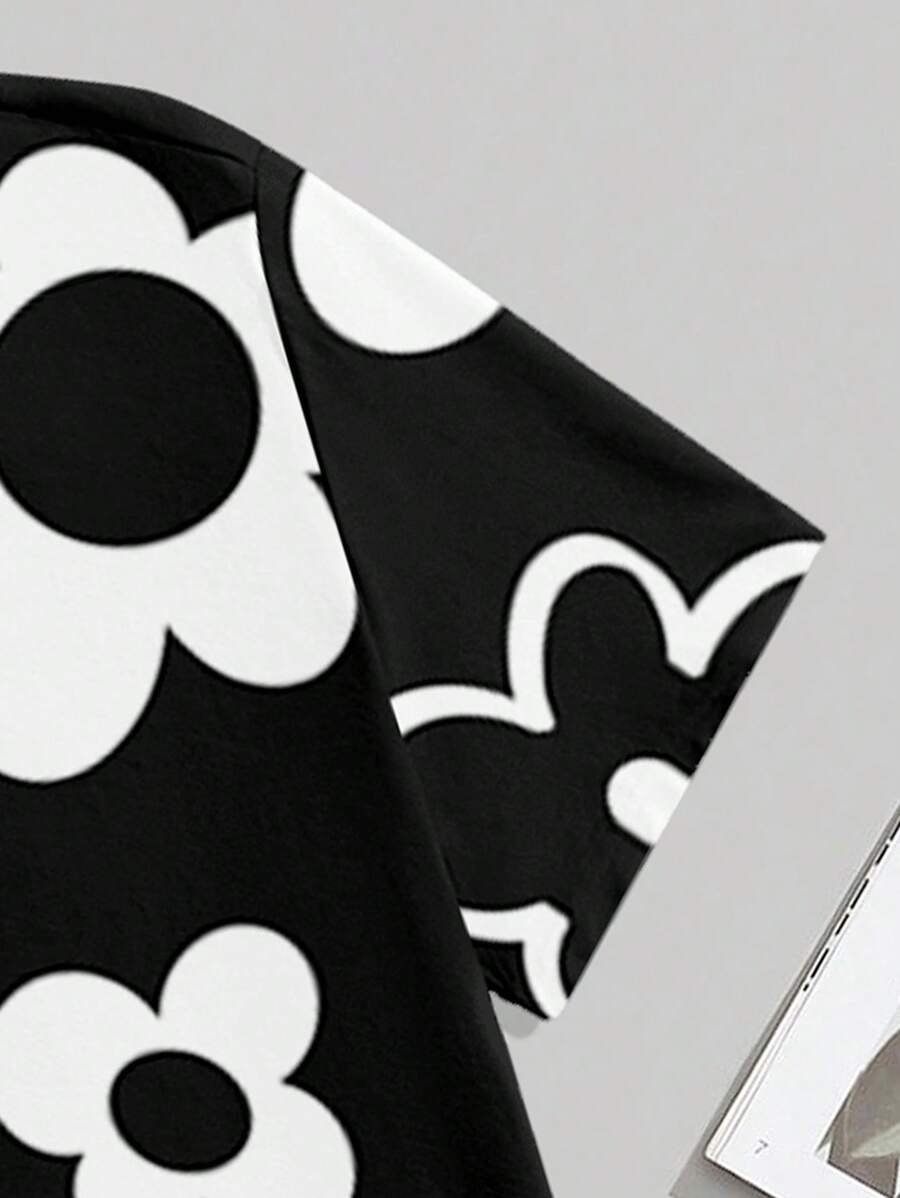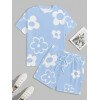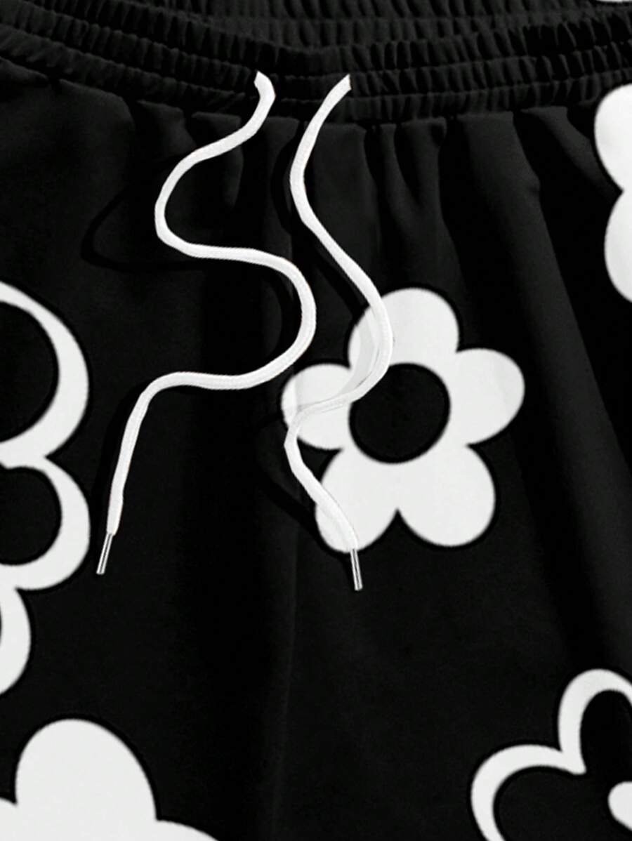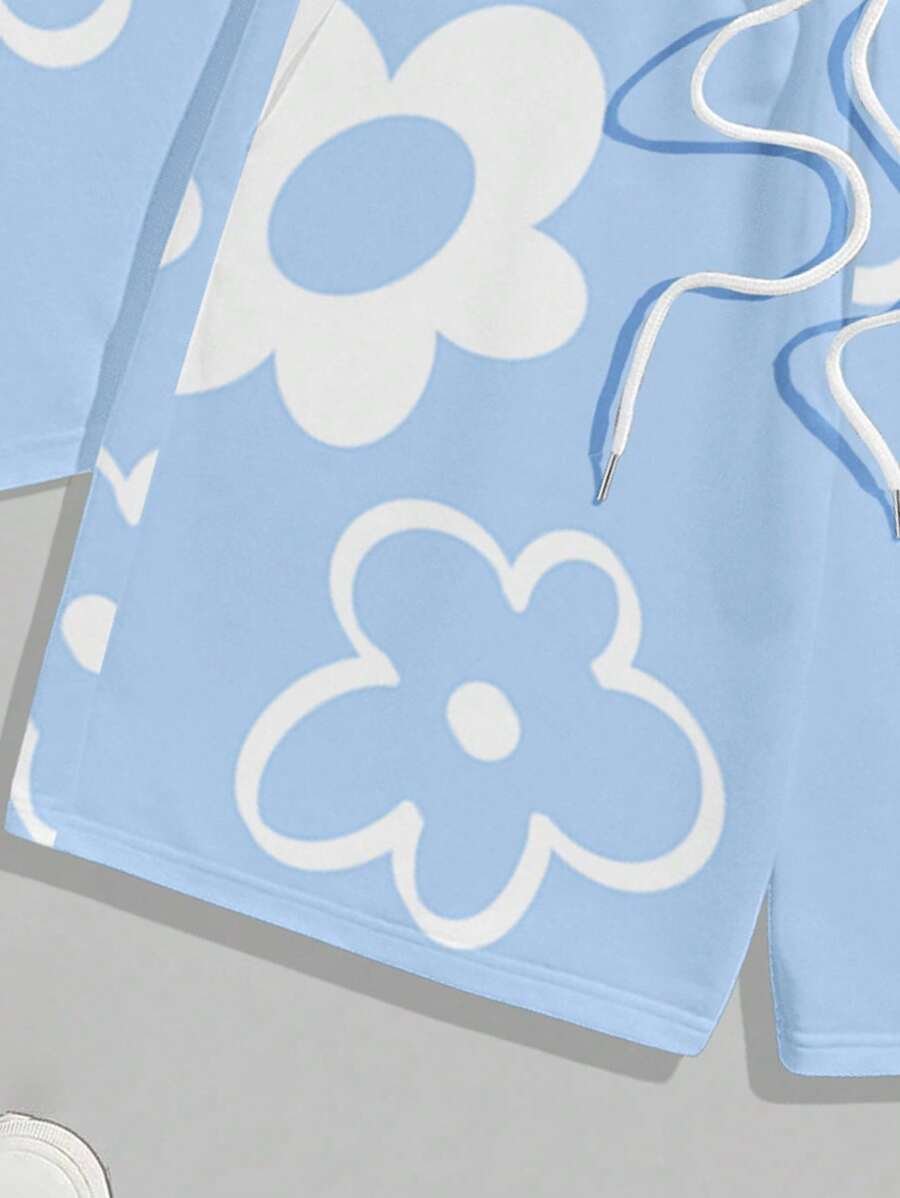 Manfinity Homme Set de 2 piezas de camiseta de manga corta casual y pantalones cortos holgados para hombres, conjunto de pantalones cortos de 2 piezas con flores, atuendos cómodos