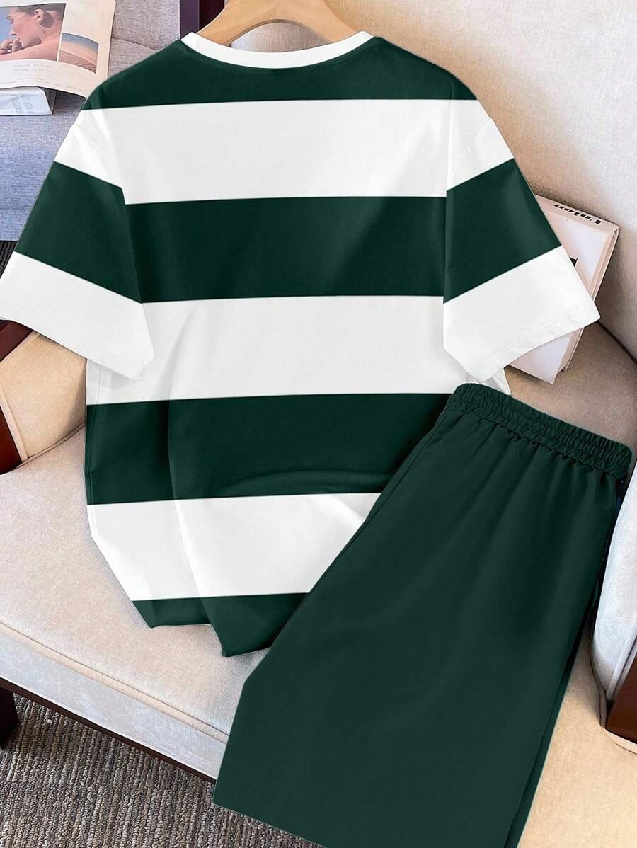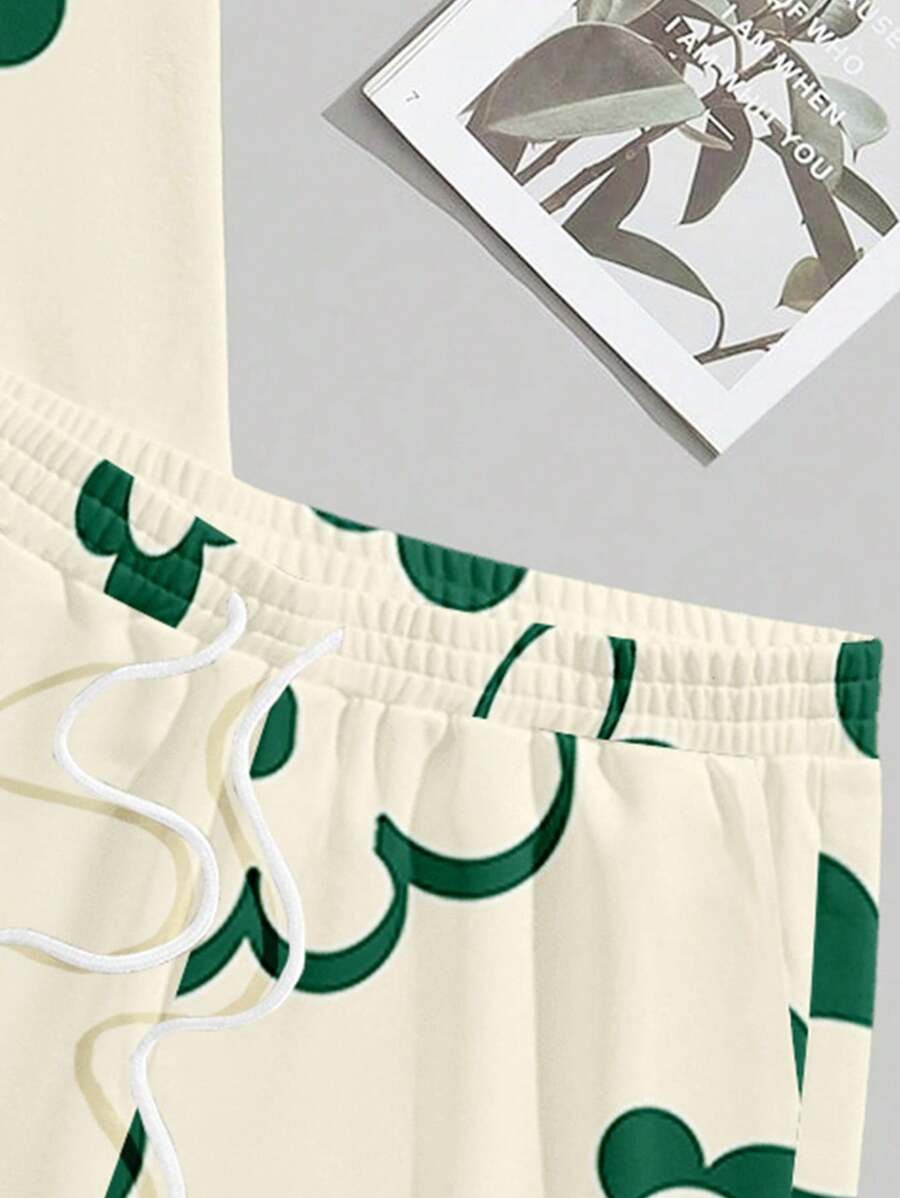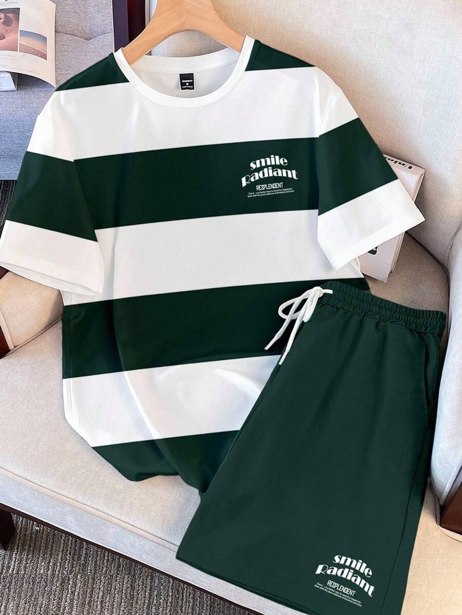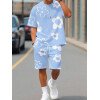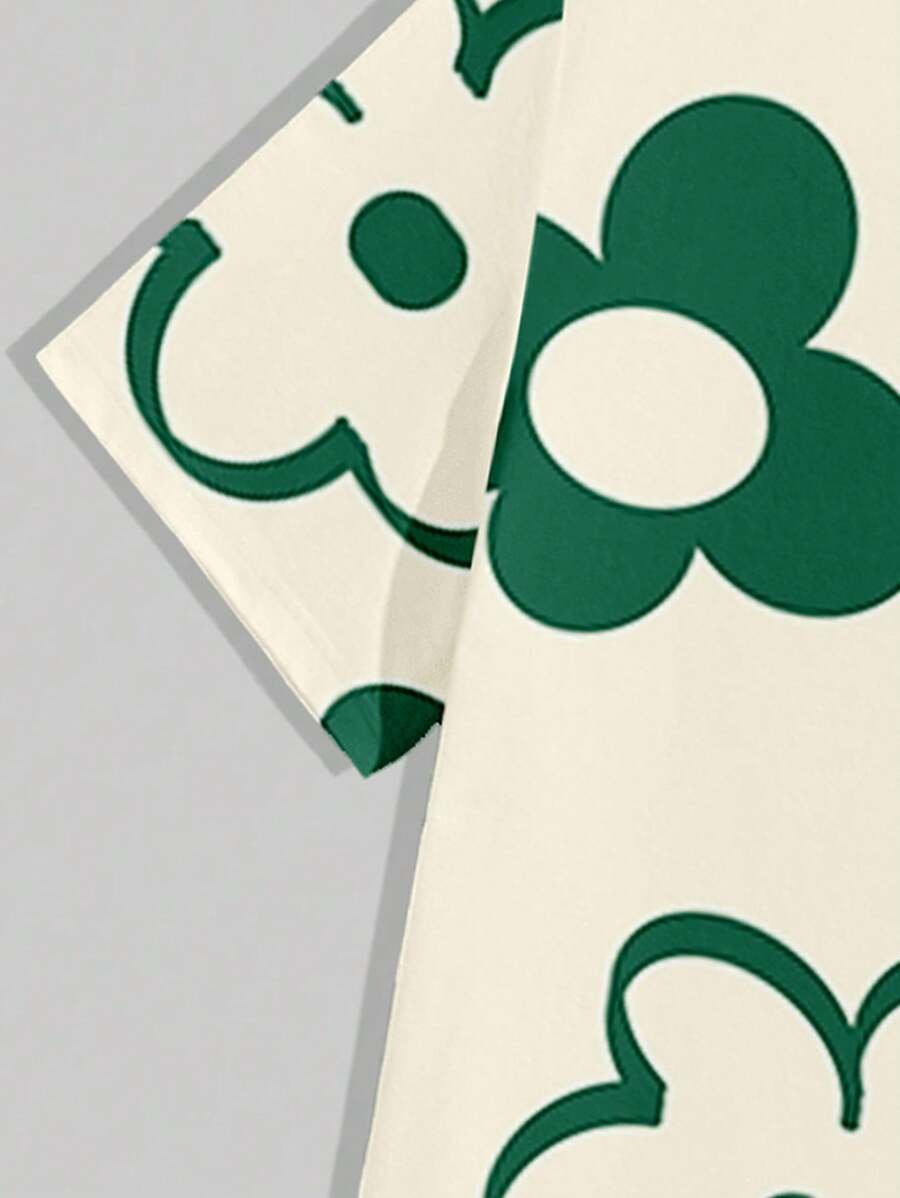 Manfinity Homme Set de 2 piezas de camiseta de manga corta casual y pantalones cortos holgados para hombres, conjunto de pantalones cortos de 2 piezas con flores, atuendos cómodos