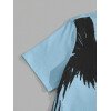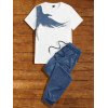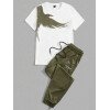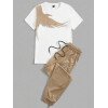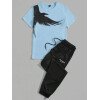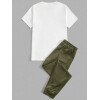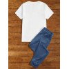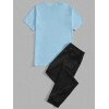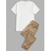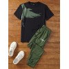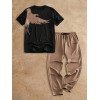 Manfinity NXTstreet 2 piezas Conjunto casual de camiseta de manga corta con cuello redondo y estampado de águila, y pantalones largos con cordón en la cintura y estampado de letras para hombre, atuendo cómodo