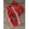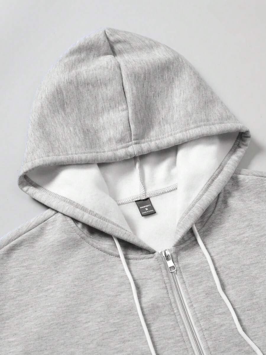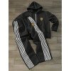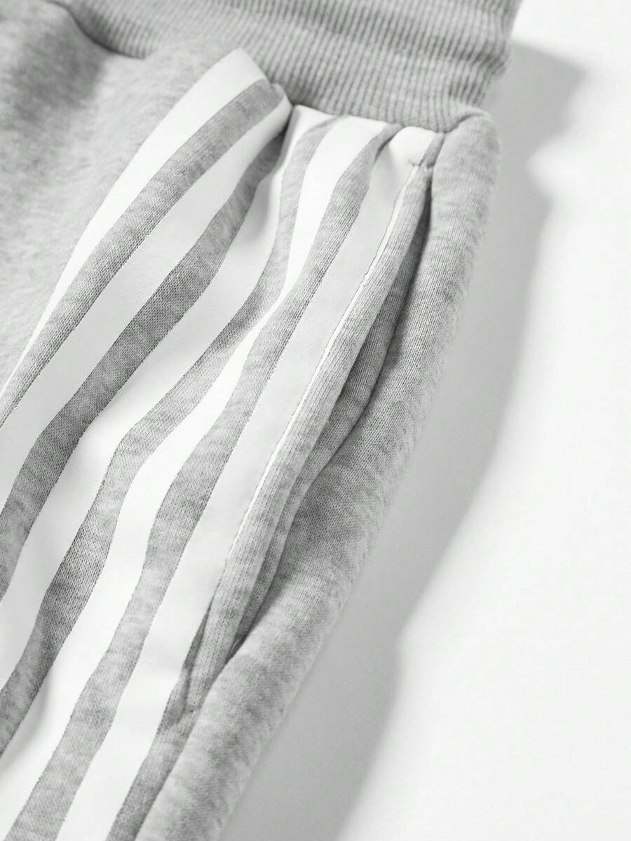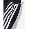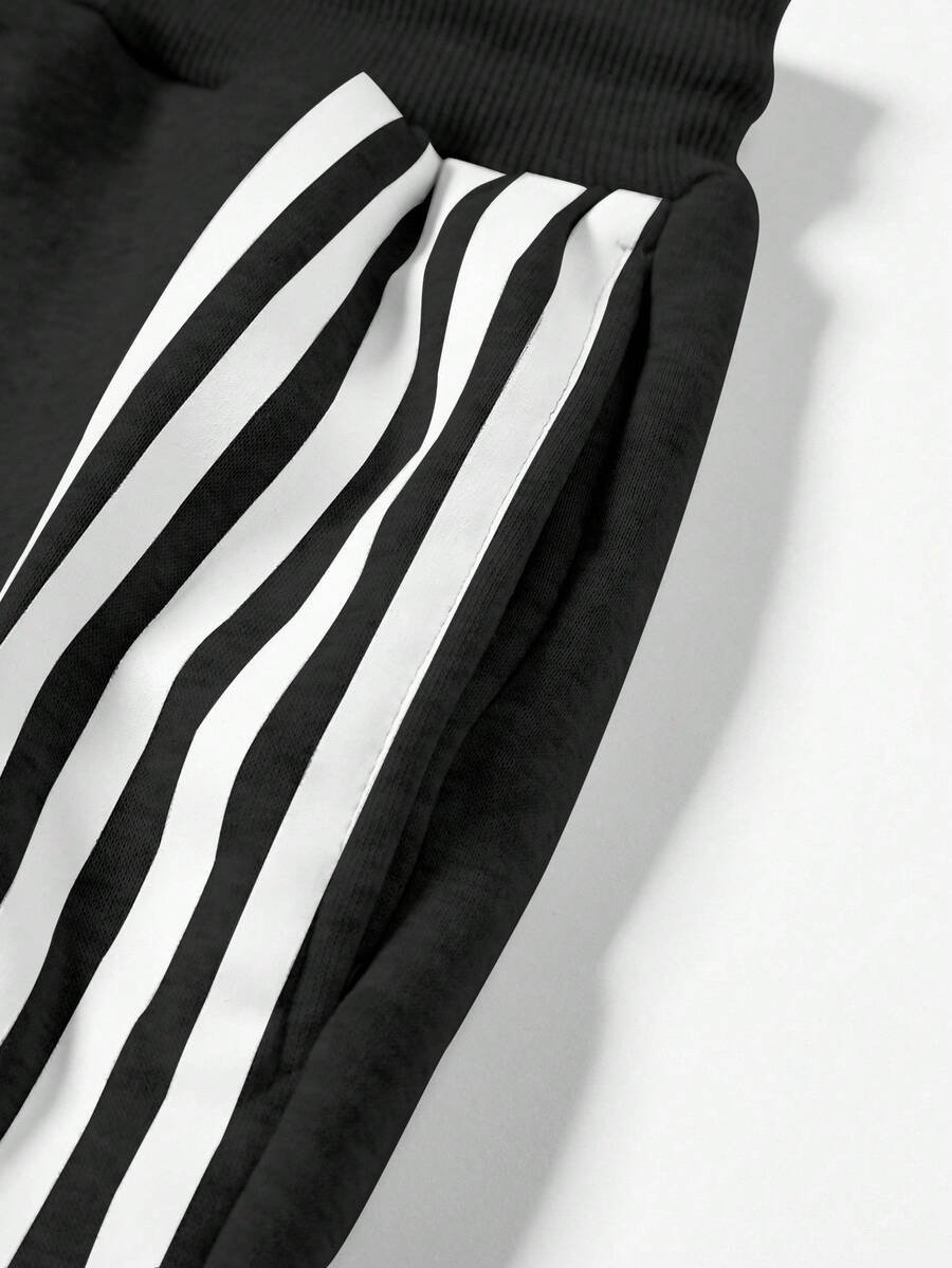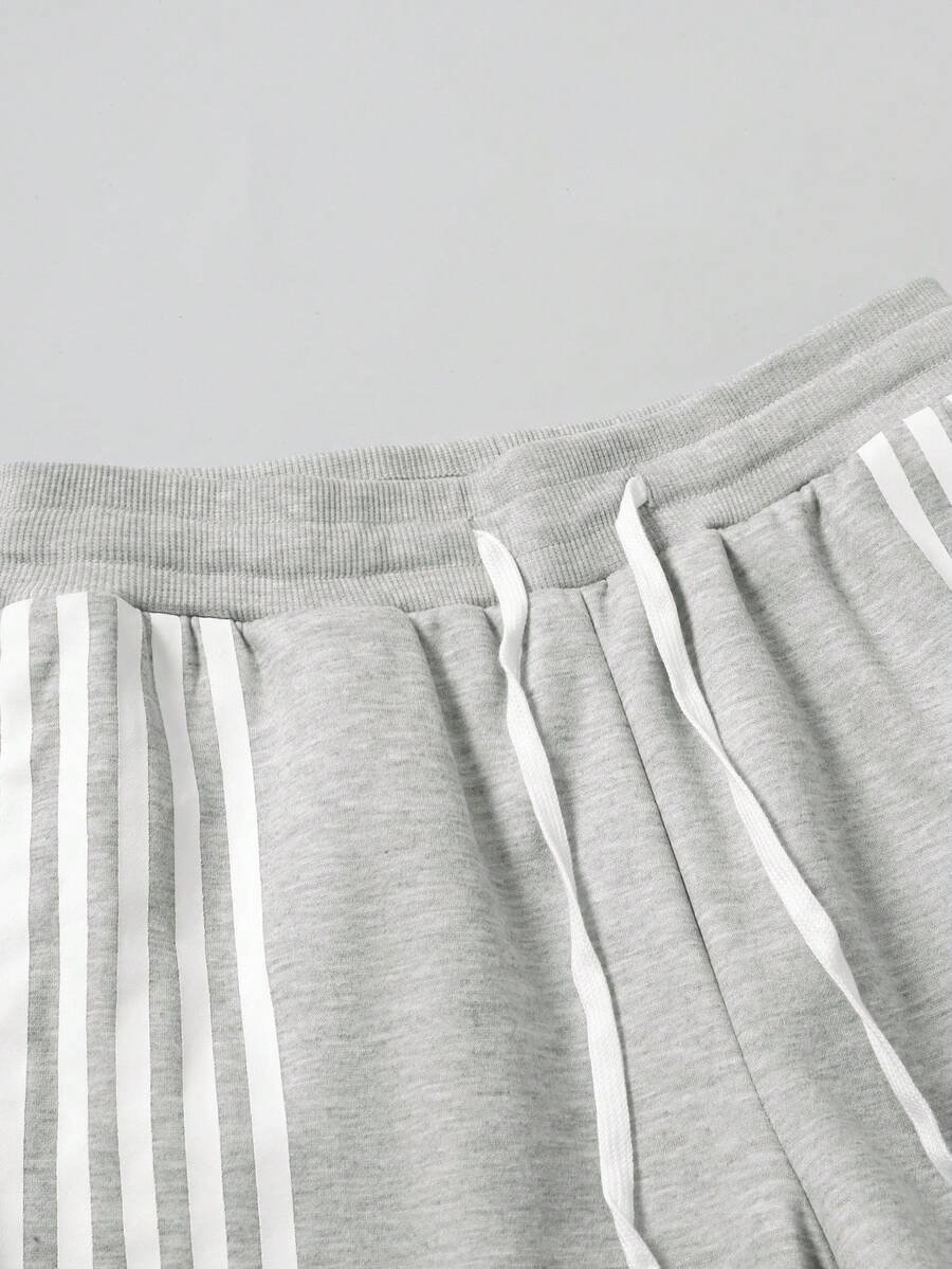 Manfinity Sporsity Conjunto de sudadera con capucha con cremallera delantera y pantalón de chándal a rayas para hombre, ropa de otoño e invierno