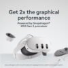 - Disfruta de juegos realistas y paisajes detallados que hacen que las imágenes sean tan reales que querrás alcanzar y tocar el mundo que te rodea. Con el doble de rendimiento gráfico de Quest 2, incluso los juegos complejos se juegan de manera más suave con detalles más nítidos. Basado en el rendimiento gráfico de la plataforma Qualcomm Snapdragon XR2 Gen 2 frente a la plataforma Meta Quest 2.