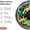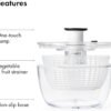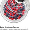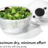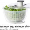 Un nuevo giro en nuestro clásico hilandero de ensaladas. Antes de la introducción del OXO Good Grips Salad Spinner en 1998, los hiladores de lechuga con manivela y lengüeta se consideraban herramientas de cocina de alta gama; algunas personas incluso usaban el ciclo de centrifugado de su lavadora para secar verduras. Nuestra bomba fácil de usar con una sola mano transformó el escurridor de ensaladas en un limpiador diario de frutas y verduras. Casi 20 años después, revisamos el original con actualizaciones inteligentes, como el freno patentado, manteniendo las características que la gente ama y se mantiene fiel a la inspiración original: un top para niños. Con un diseño moderno que se adapta a cocinas contemporáneas y un freno mejorado que detiene la cesta al instante, creemos que te encantará este clásico mejorado. Seque las verduras de ensalada rápidamente con una simple presión de la bomba suave y antideslizante. La base antideslizante mantiene el cuenco estable en tu encimera mientras gires, y el botón de freno integrado hace que sea fácil de detener y descargar. La cesta funciona como un colador, y la tapa se separa para una fácil limpieza. Todas las piezas son aptas para lavavajillas. Capacidad del tazón: 6.22 qt / 5.9 L Capacidad de la cesta: 4.4 qt / 4.1 L Apto para lavavajillas.