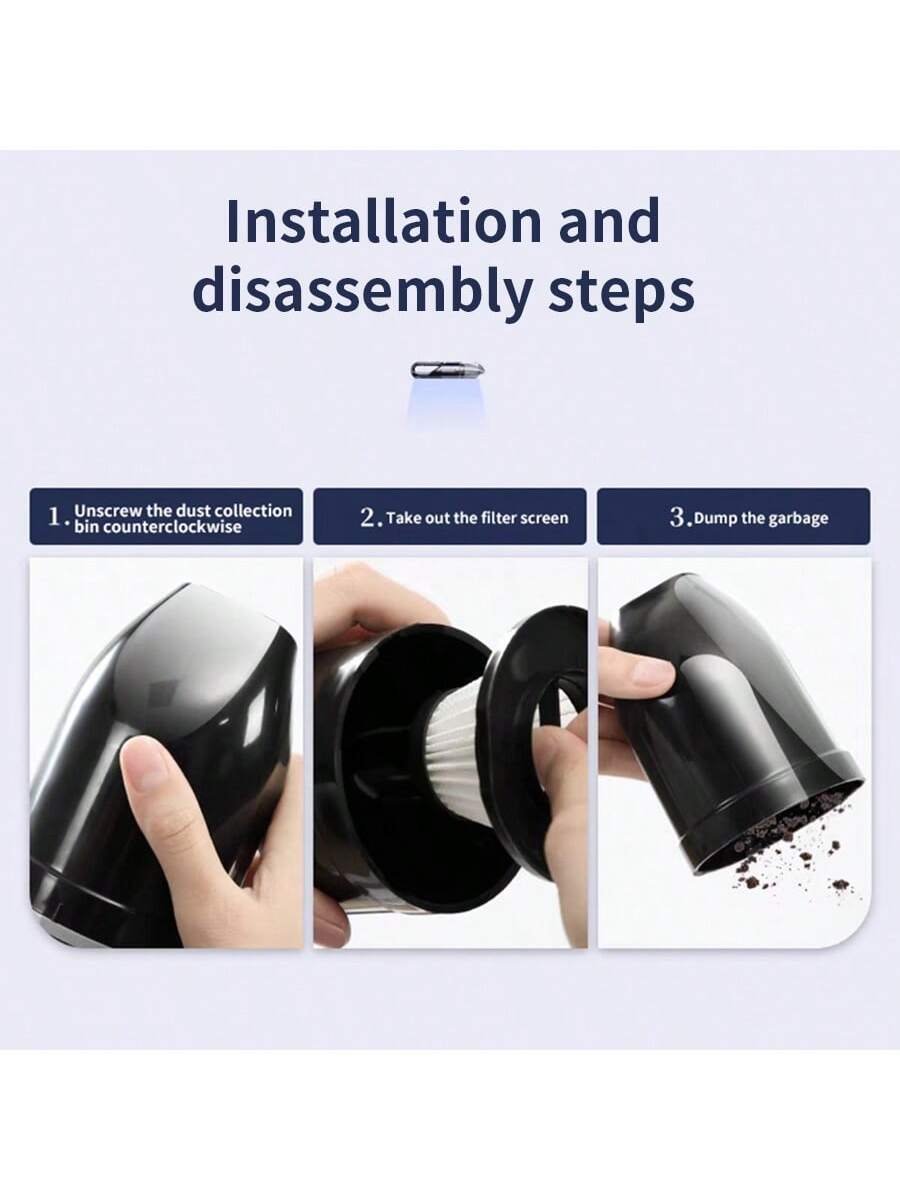 Mini aspiradora para automóvil – Potente succión. Alto rendimiento. Compacta y eficiente a 12V – Limpia sin esfuerzo todo espacio y ranura en el interior de su automóvil.