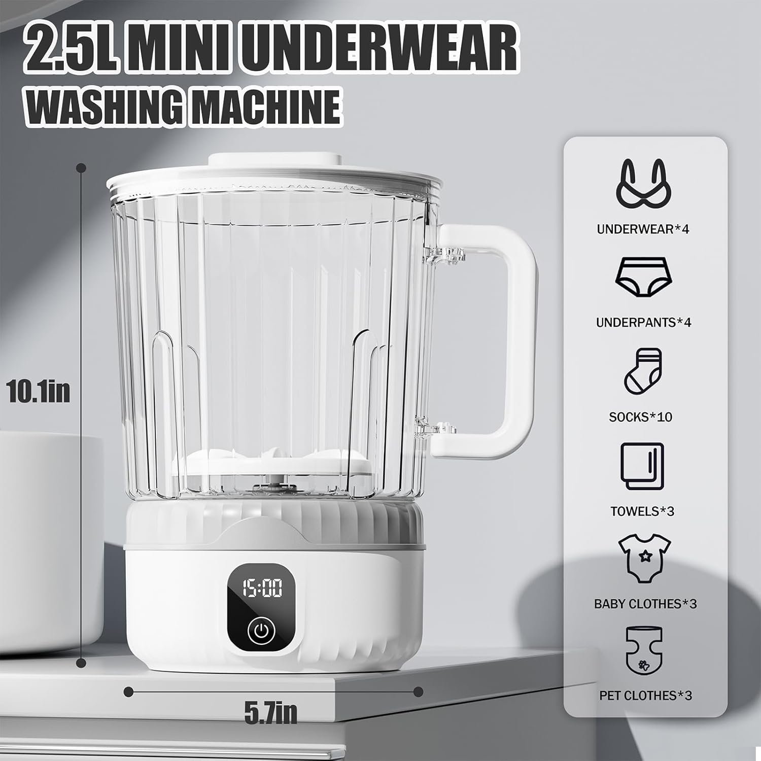 Cuenta con una suave imitación de lavado a mano combinado. Tamaño perfecto y diseñado para limpiar de forma segura e higiénica ropa de bebé, ropa interior, calcetines y artículos delicados.