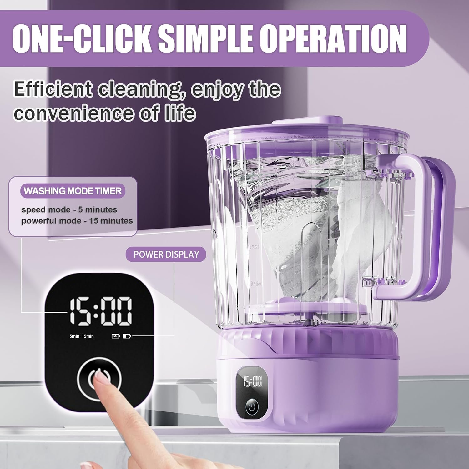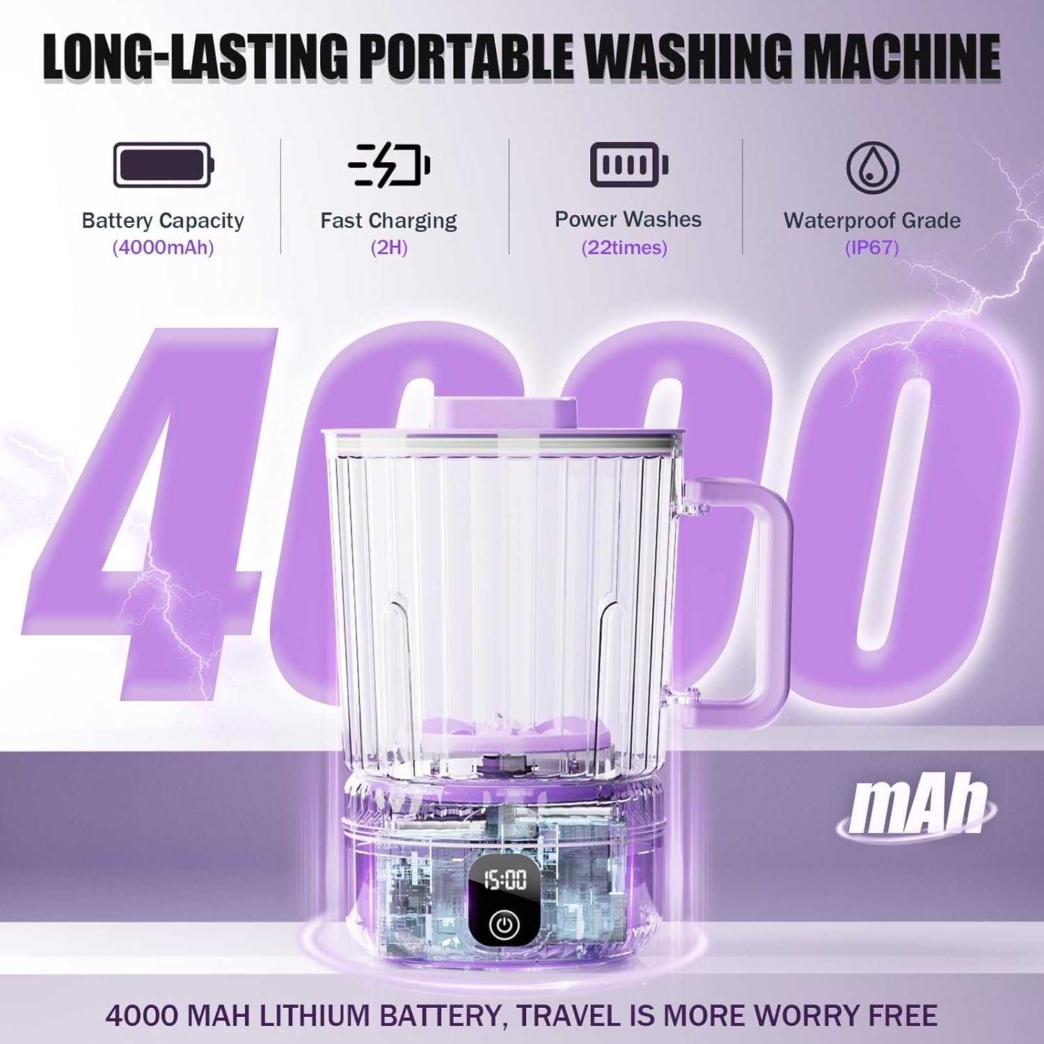 Esta mini lavadora tiene una batería recargable incorporada de 4000 mAh con un motor de 2000 r/min